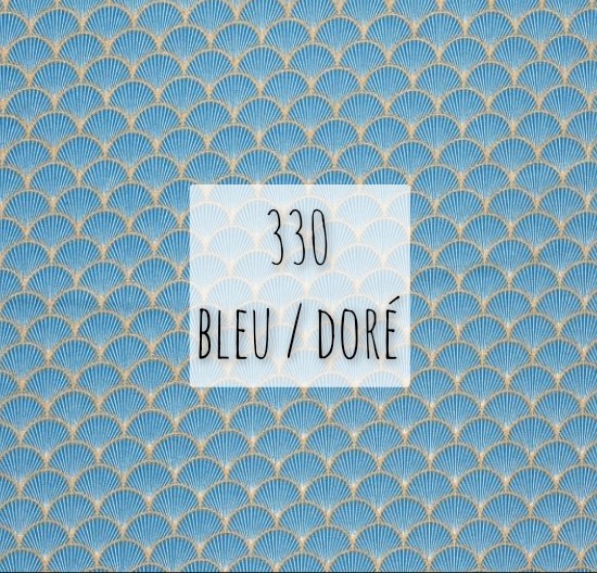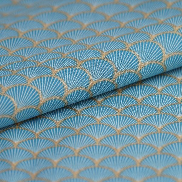 popeline coton graphique éventail bleu doré