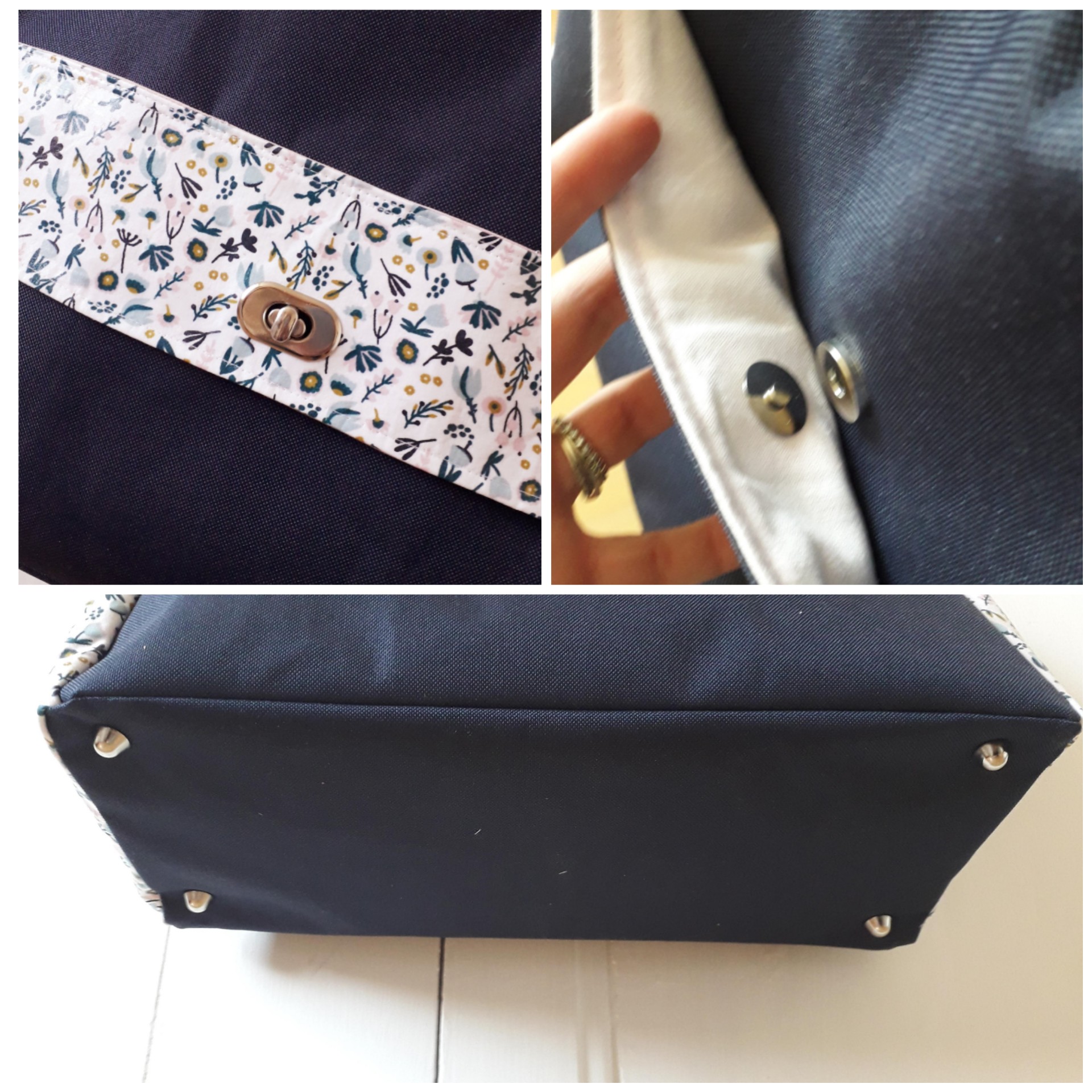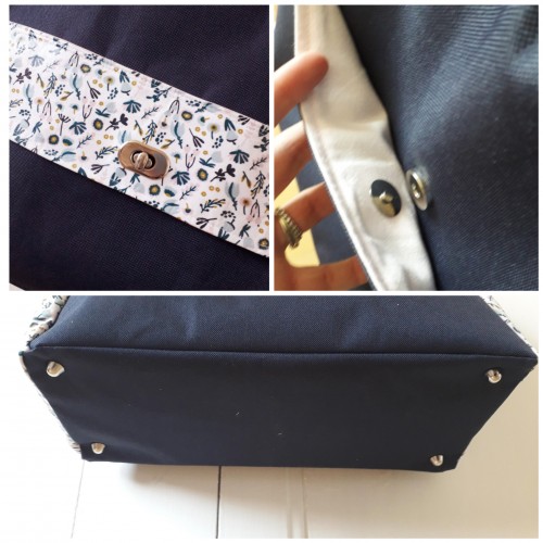 3/ vous pouvez choisir que le rabat et les poches côtés soient en toile unie ou en coton imprimé.