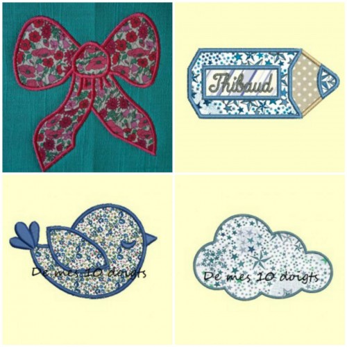 - broderie d'un motif en appliqué (plusieurs dessin au choix, en photo ci contre)