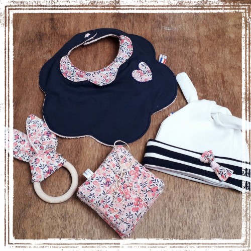- 1 bavoir bandana / bavana double face, tissu coton (Liberty ou autre motif) et micro éponge de bambou.