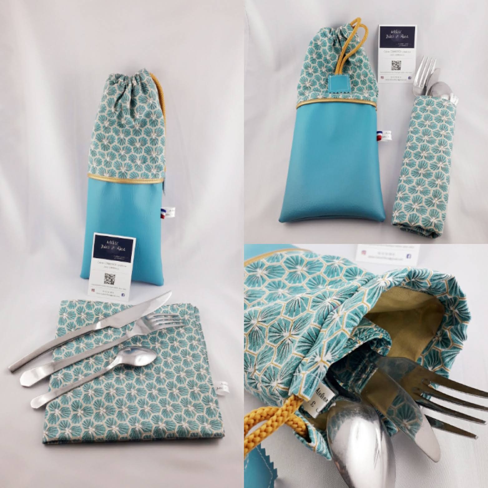 - Une pochette à coulisse bi matière: simili et tissu à motif (Liberty ou non)