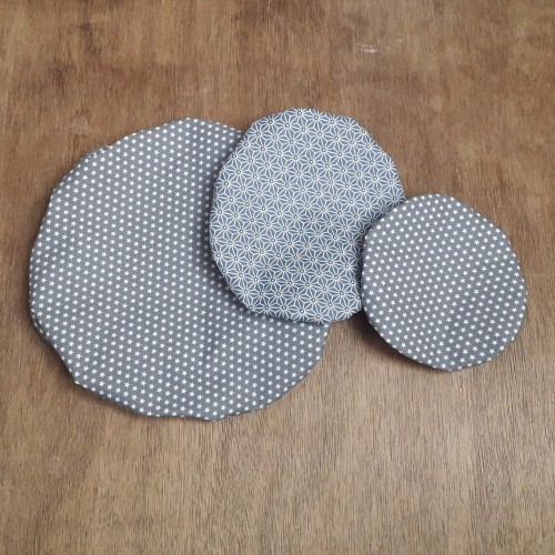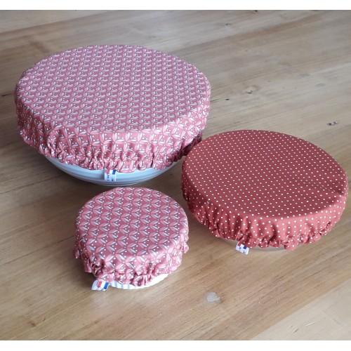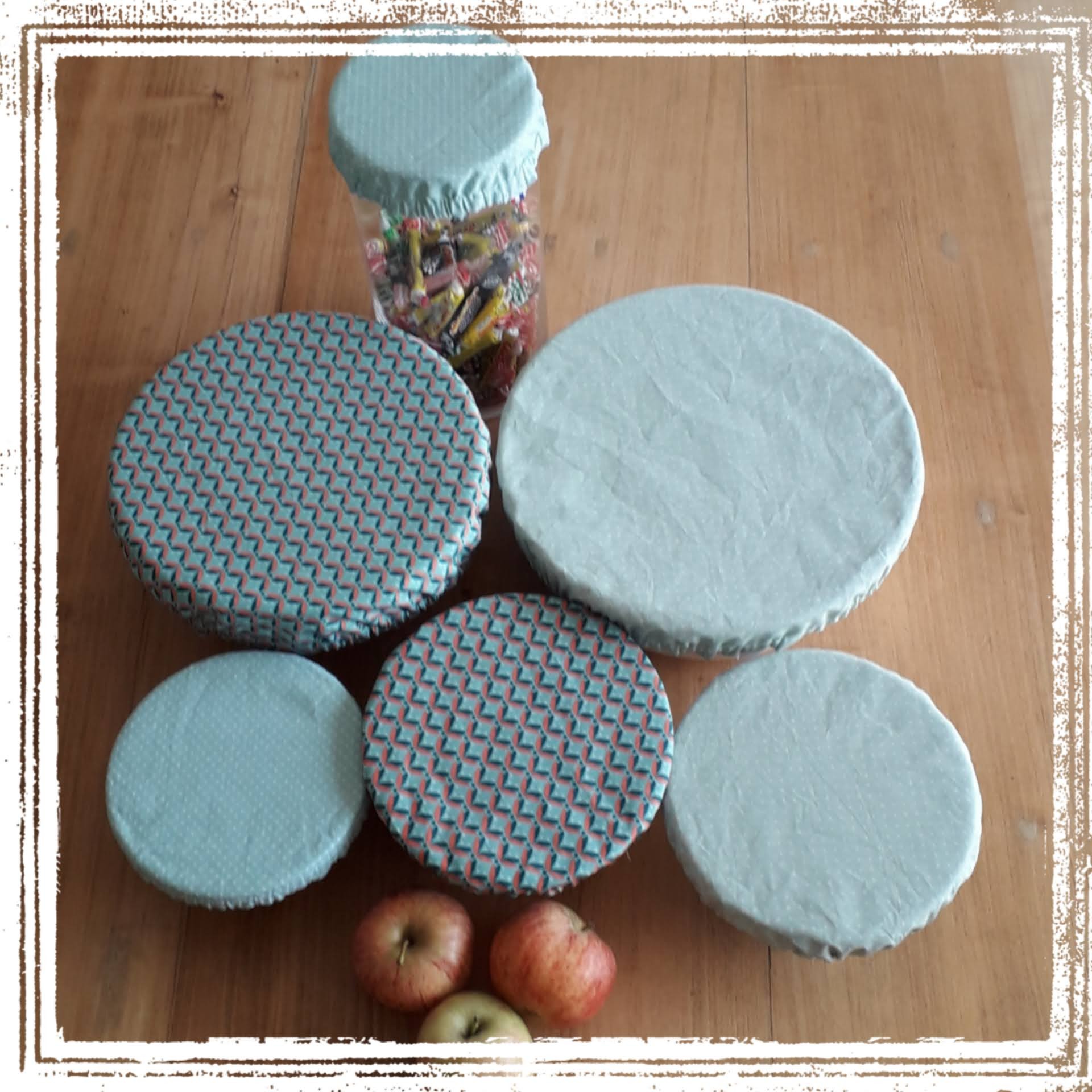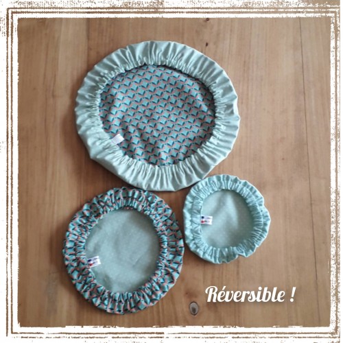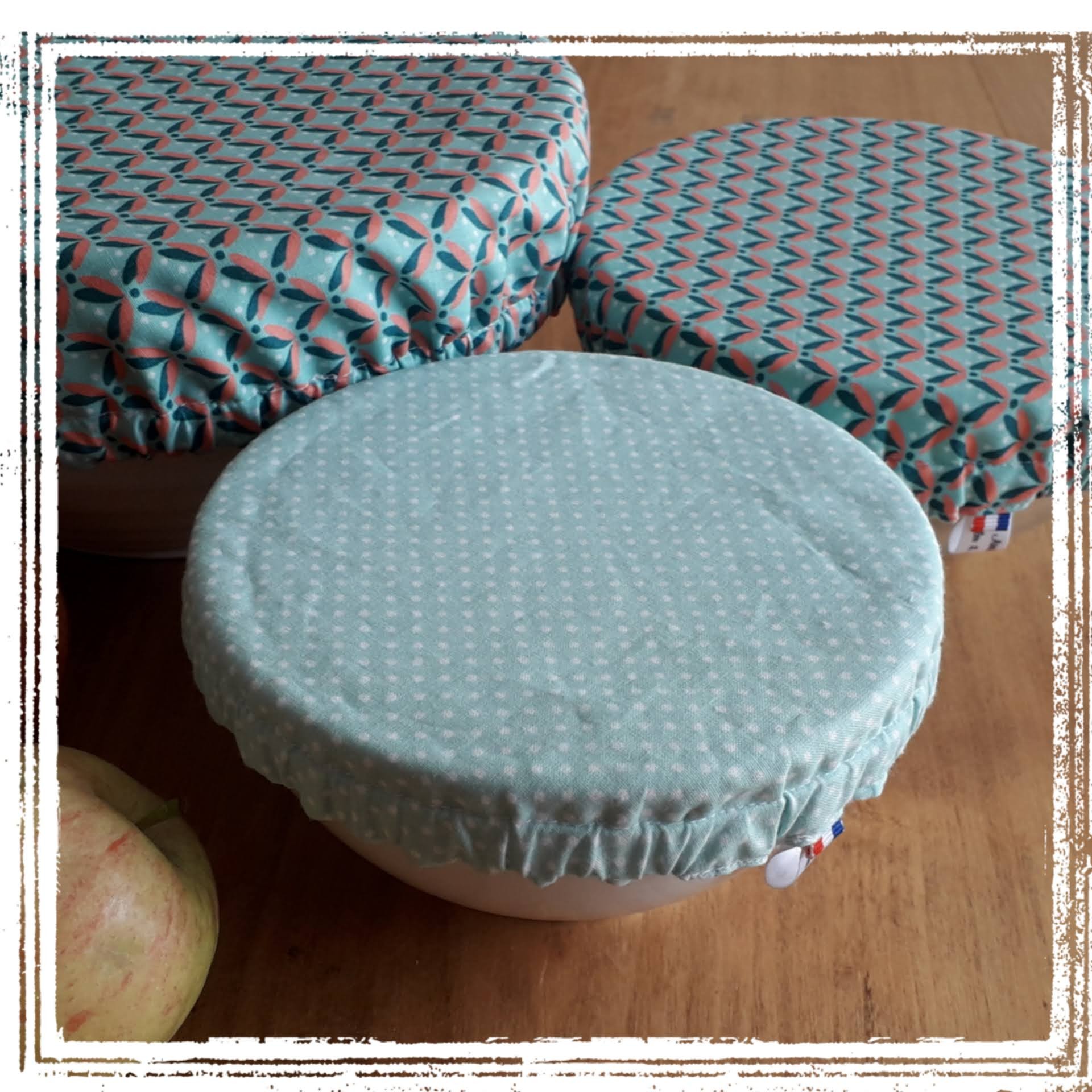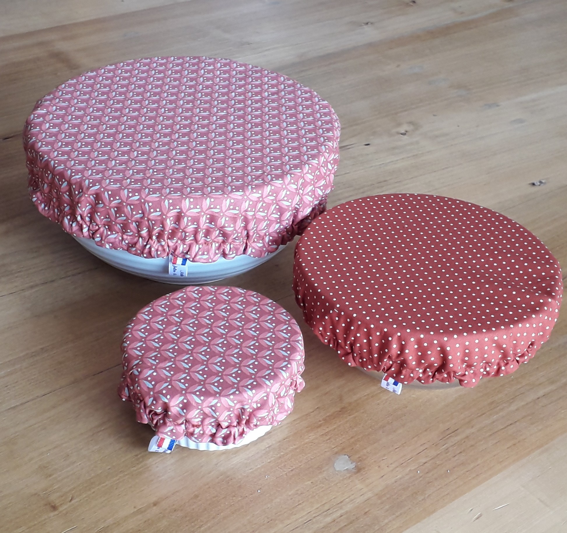 - une face en coton enduit (étanche et imperméable), idéale pour recouvrir des plats contenants des aliments "humides" (salades composées, légumes cuisinés, plats en sauces...)