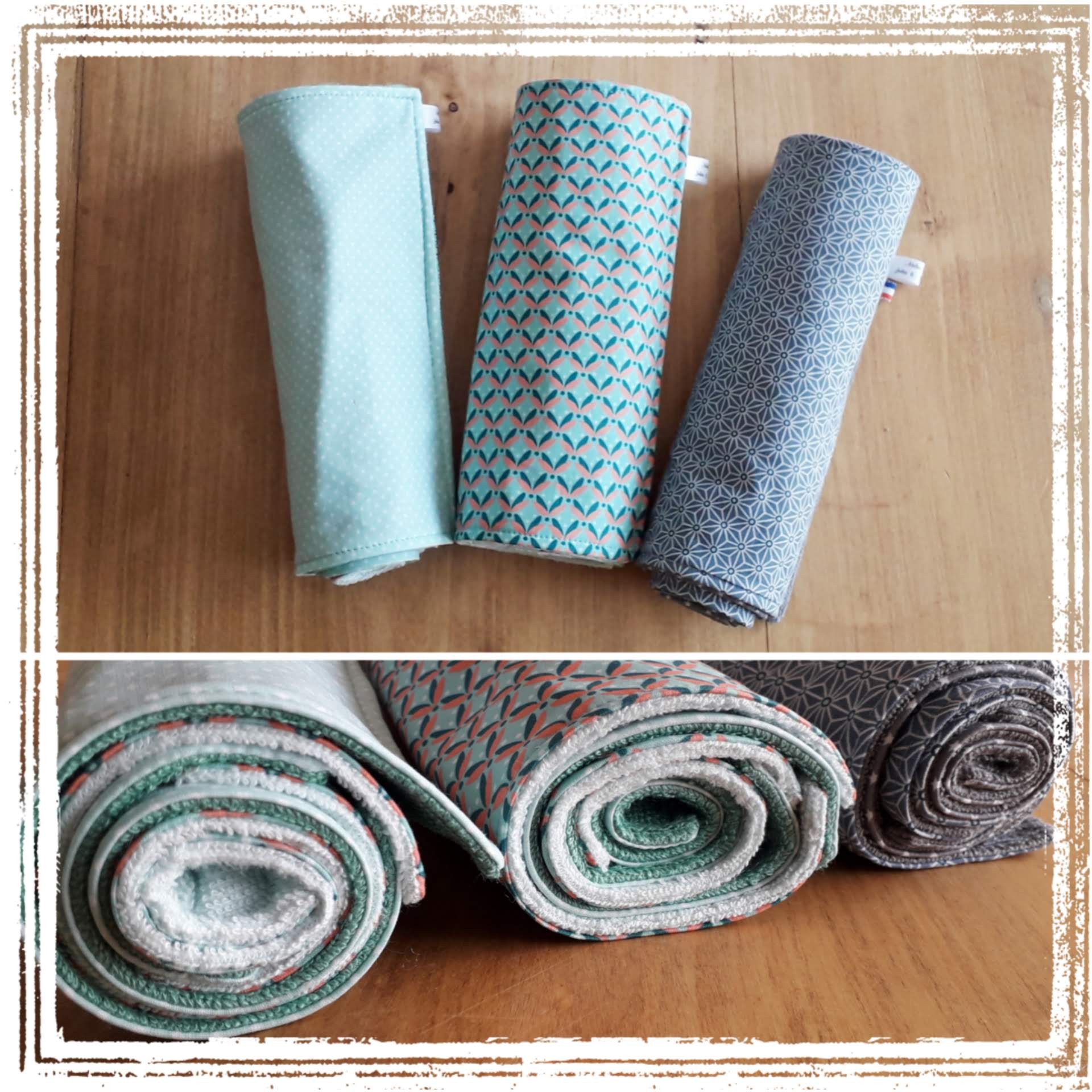 - 4 feuillets d'essuie tout lavable double face en micro éponge de bambou très douce!