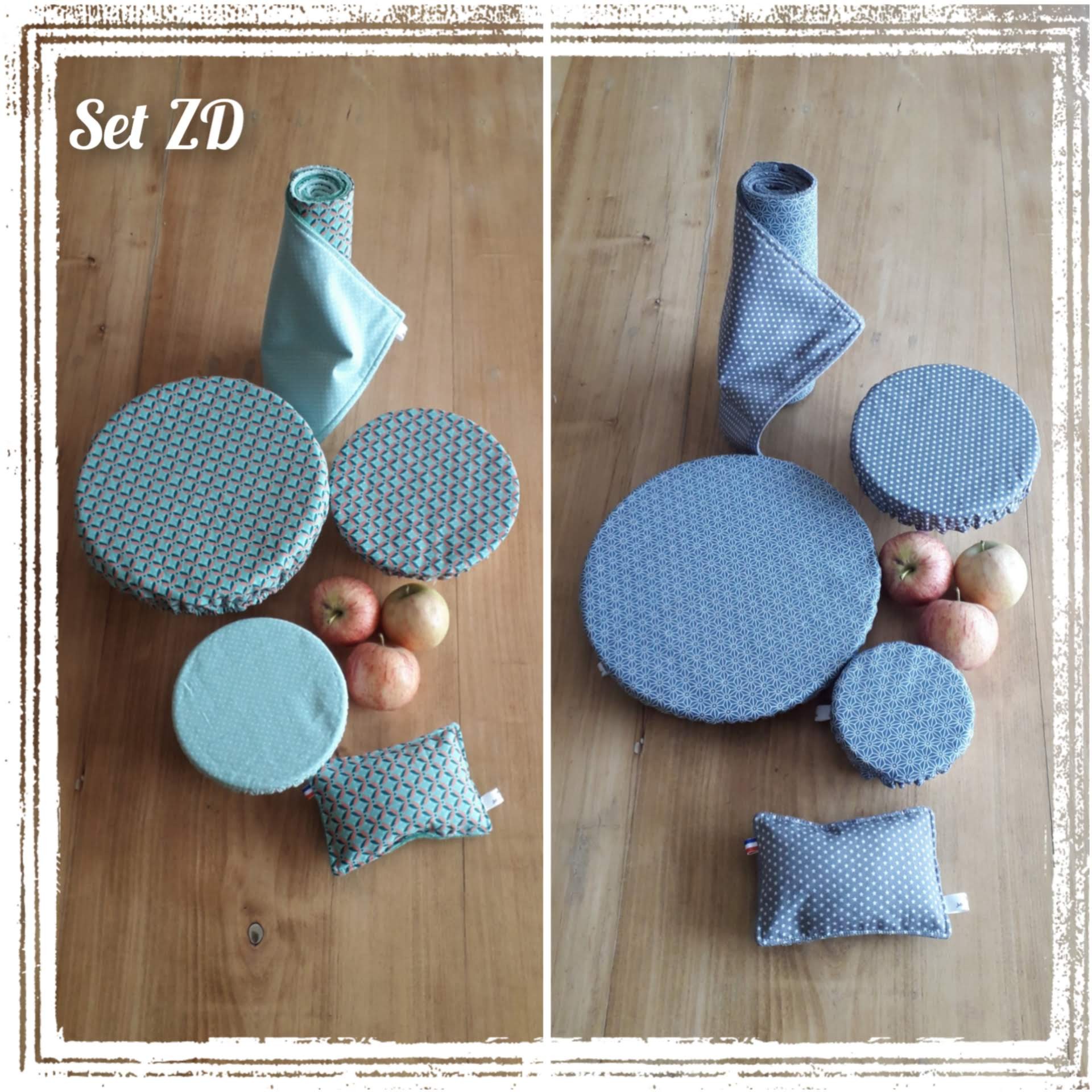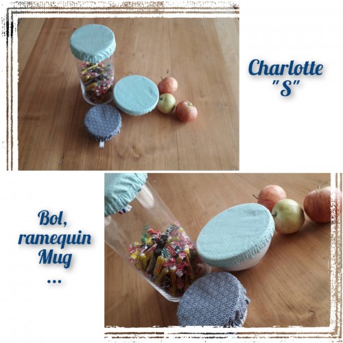 - 3 Charlottes à saladier double face: une face en coton enduit (étanche et imperméable), idéale pour recouvrir des plats contenants des aliments "humides" (salades composées, légumes cuisinés, plats en sauces...) et une face en coton, adaptée pour les aliments "secs", tels que des bonbons, fruits entiers, légumes, chips...