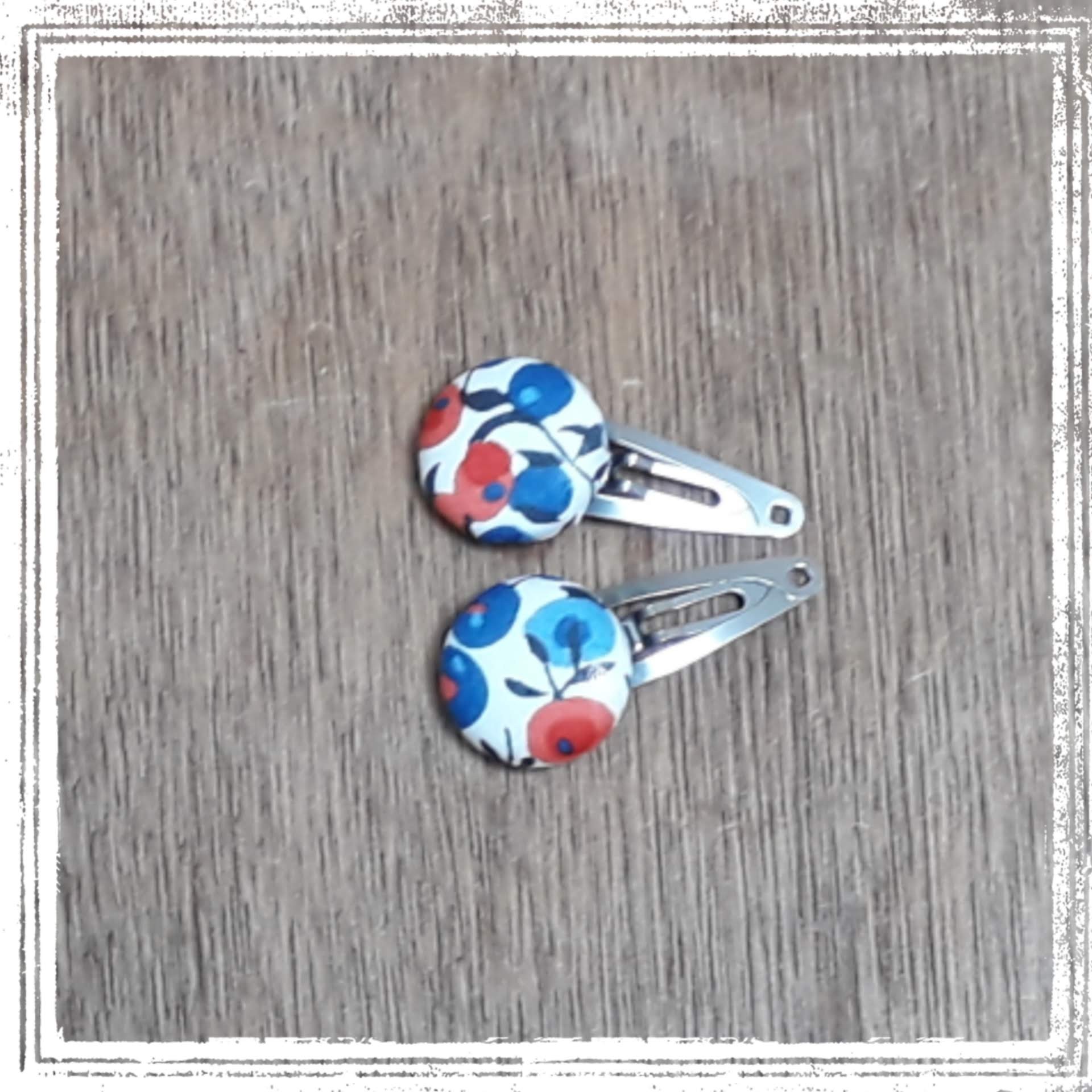 Lot de 2 barrettes Bouton recouvert du tissu de votre choix.