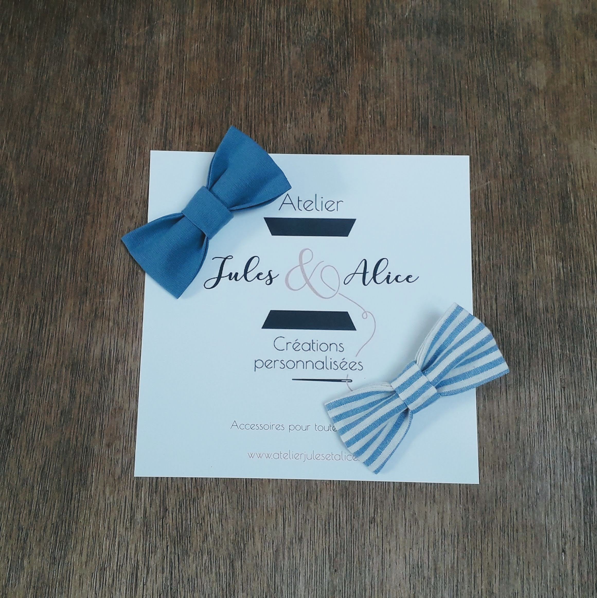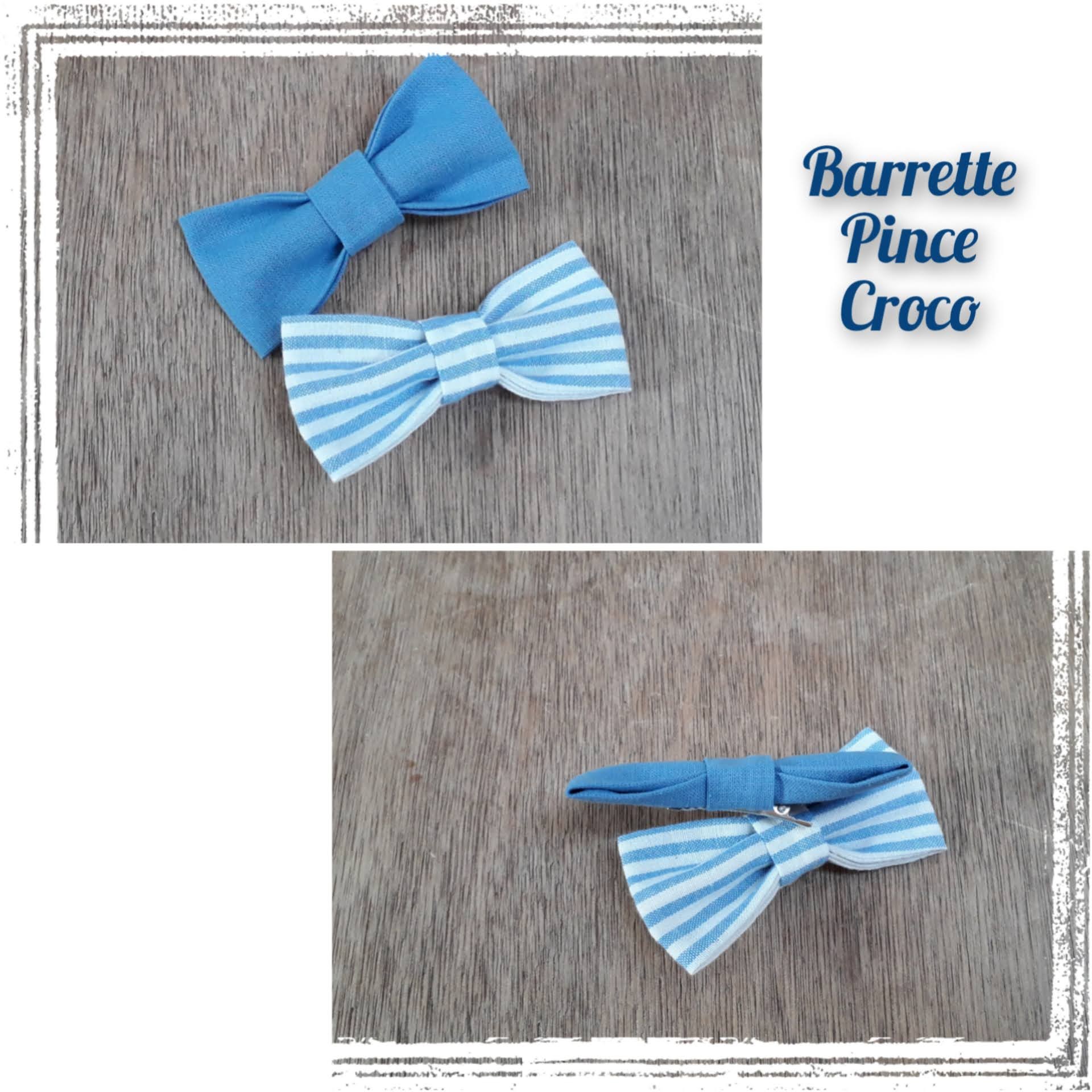 Barrette Noeud double en tissu, montée sur pince crocodile plate.