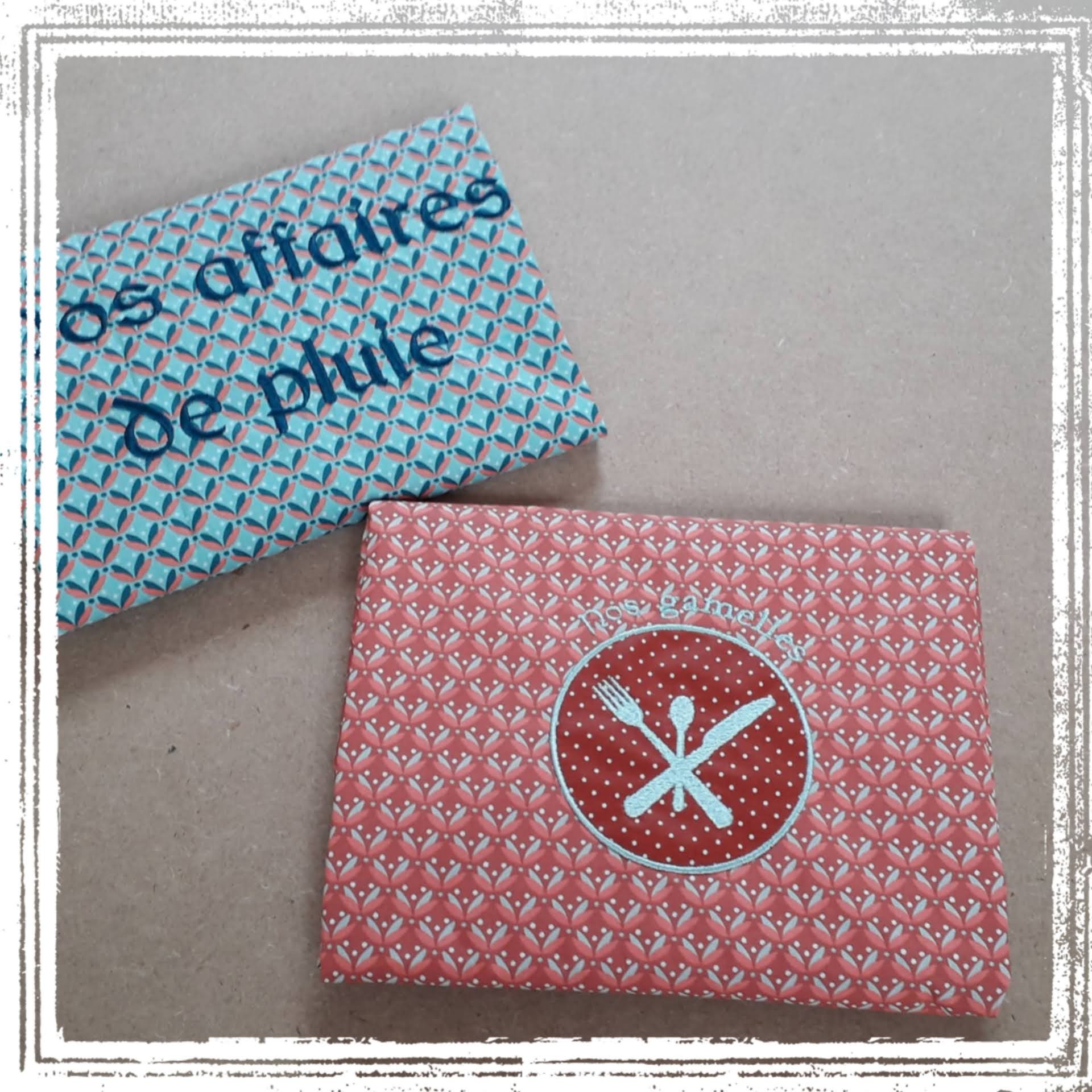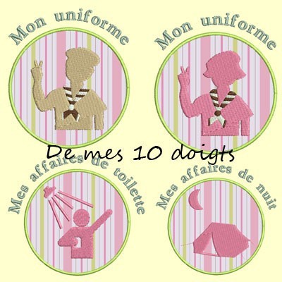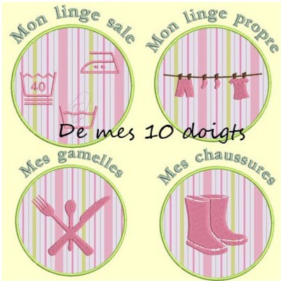 - dessin (macaron) + 1 broderie "mes affaires de toilette" ou prénom