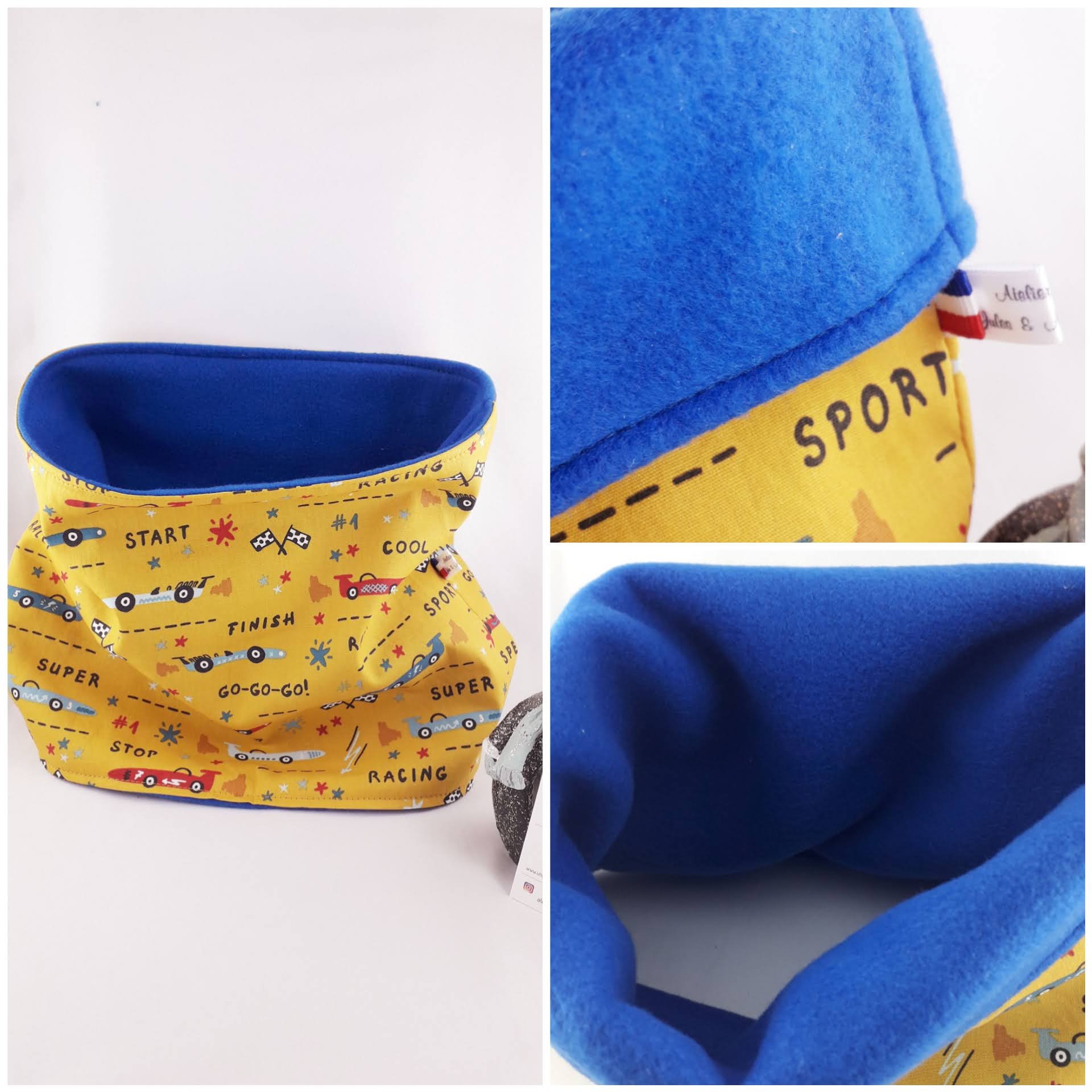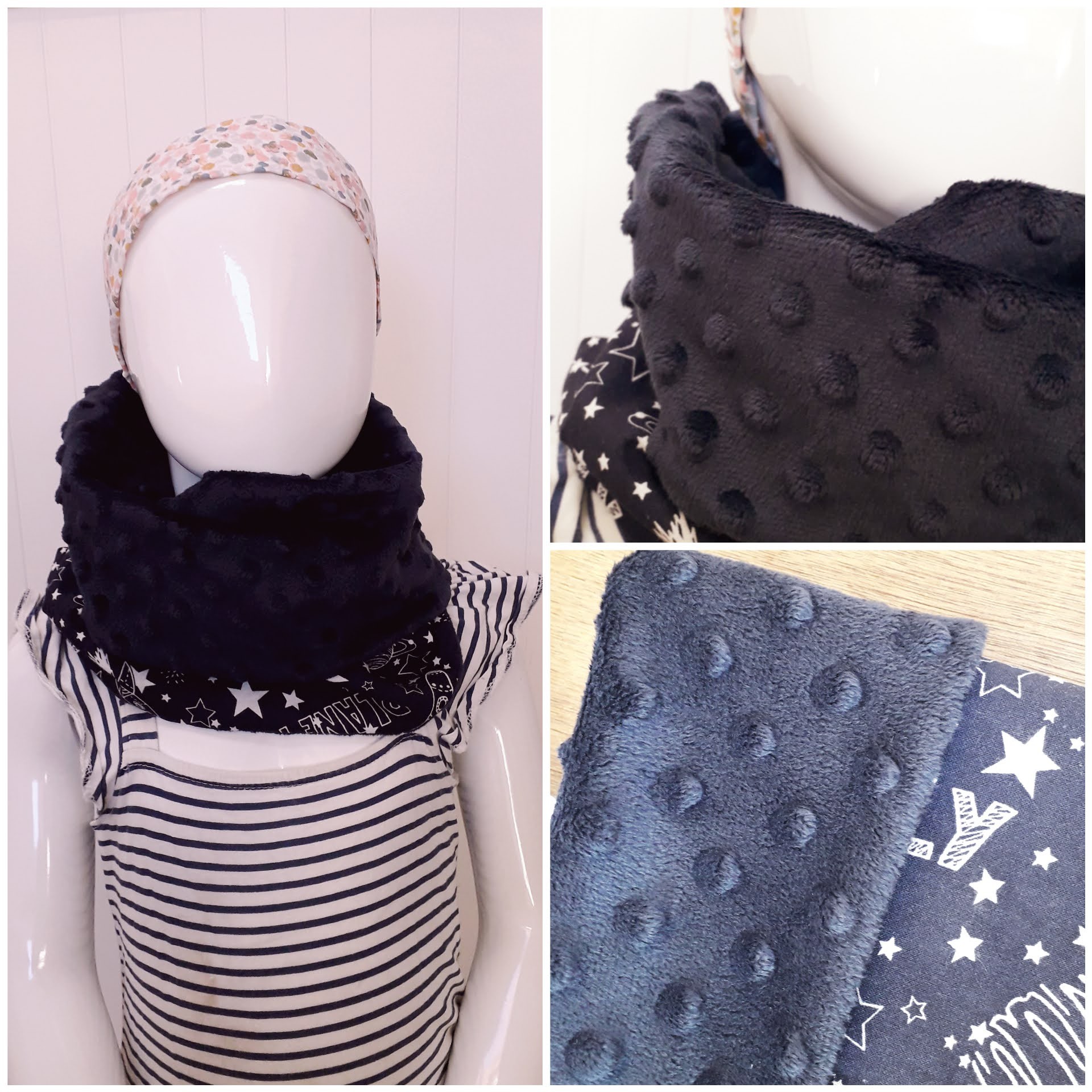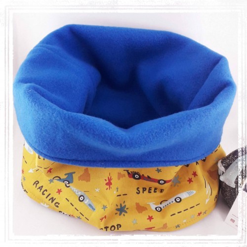 double face: une face en tissu coton à motifs et une face en polaire toute douce!