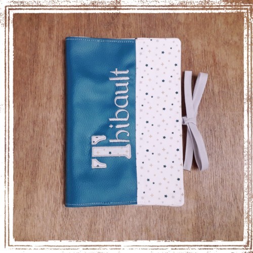 Broderie du prénom comprise, avec 1ère lettre majuscule en appliqué (tissu imprimé assorti)
