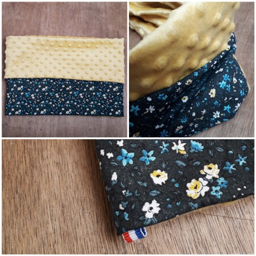 double face: une face en tissu coton à motifs (fleuris, écossais, graphique, etc...) et une face en polaire toute douce!