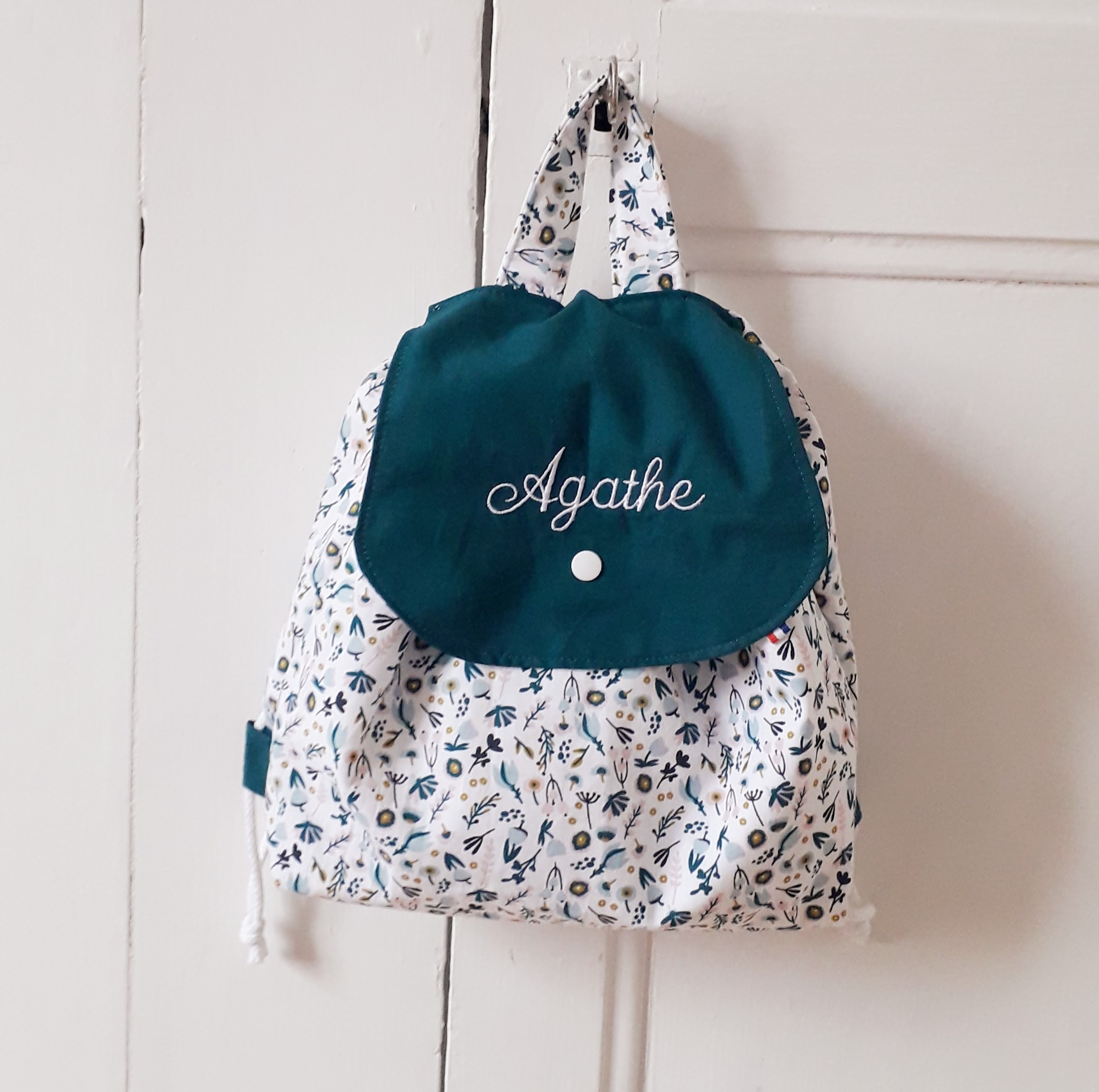 ensuite vous pouvez décider d'ajouter la broderie d'un prénom sur le rabat du sac à dos.