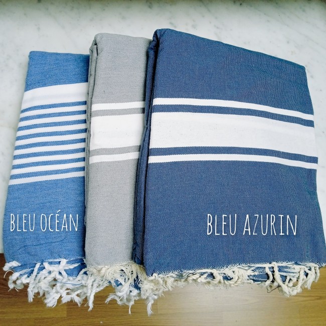 Fouta 100% coton, avec franges tressées.