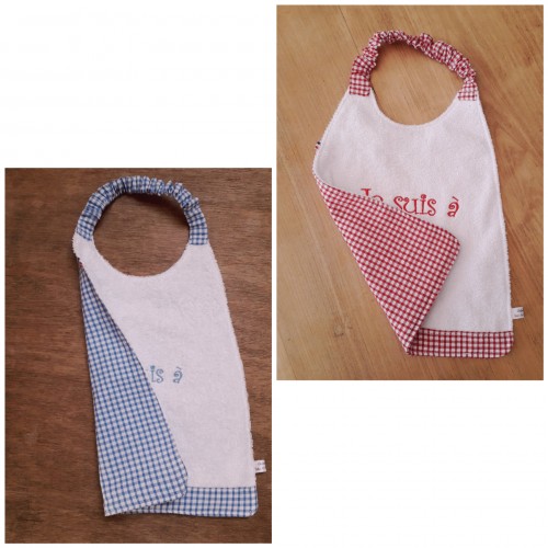 Grand bavoir ou serviette élastiqué(e) lavable, super facile à enfiler!