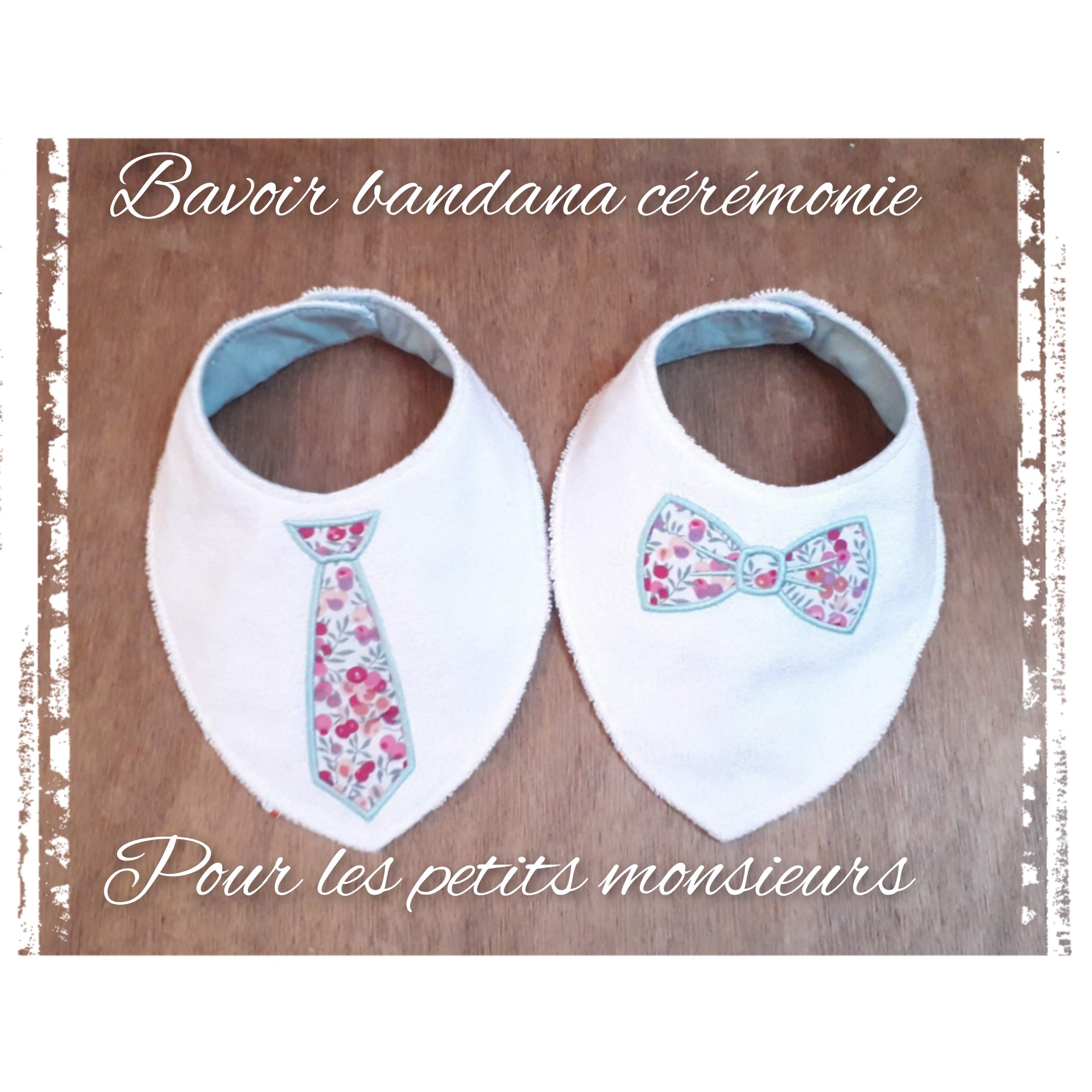 Bavoir bandana brodé d'un joli noeud papillon ou d'une cravate