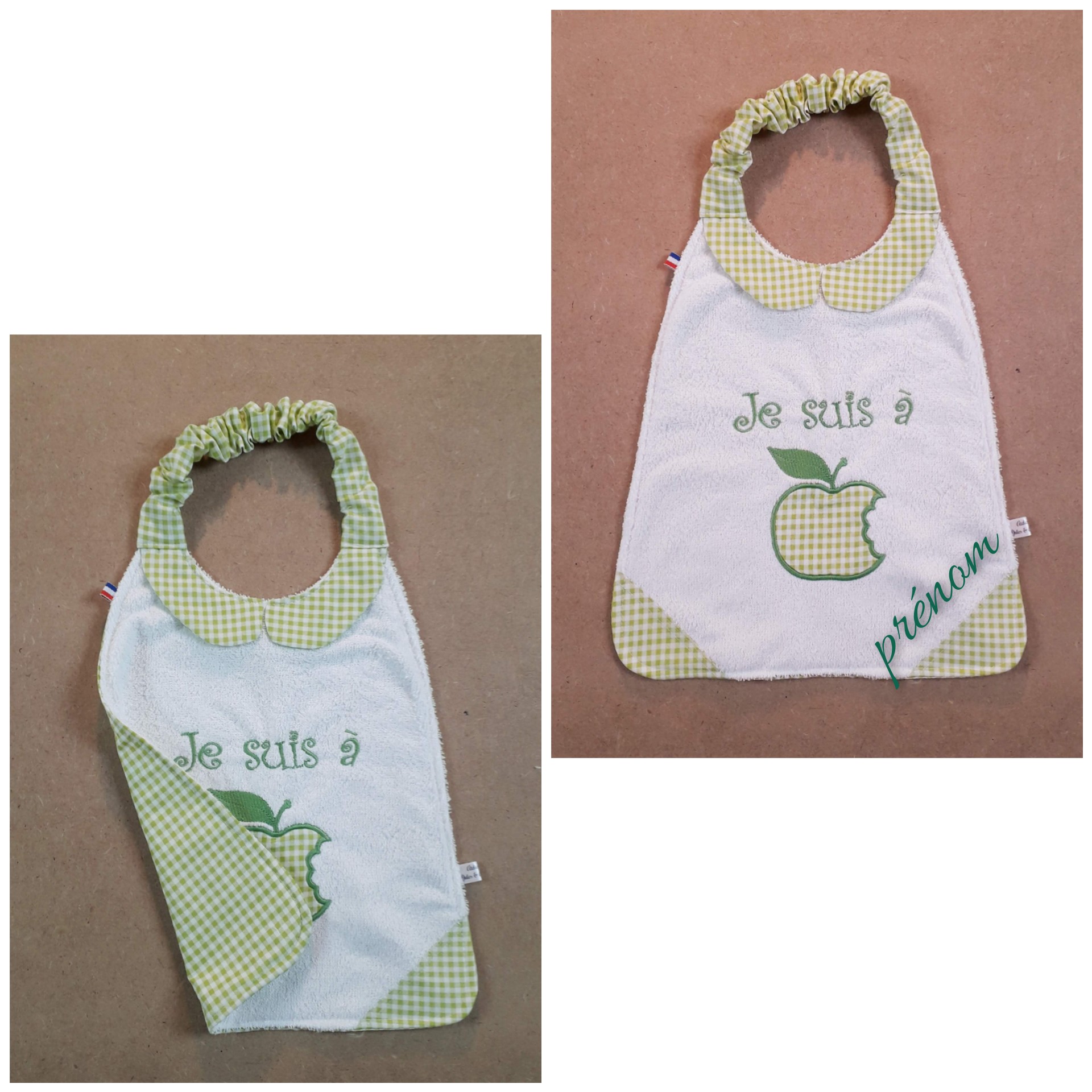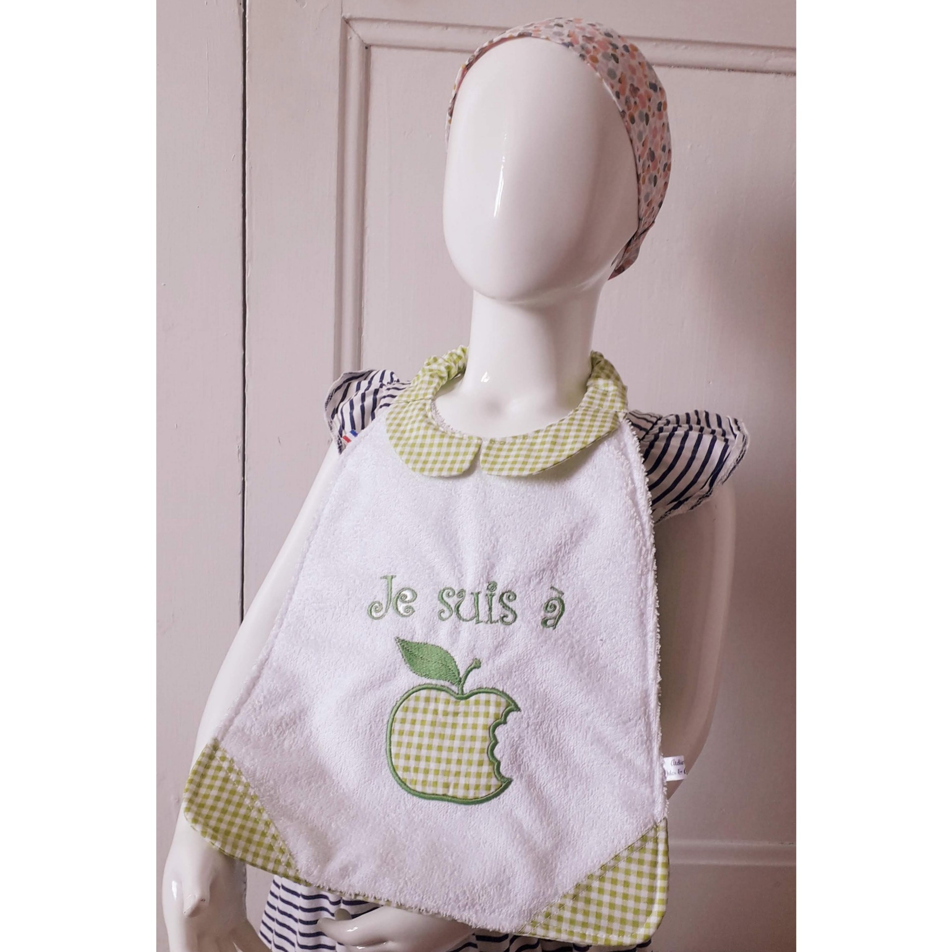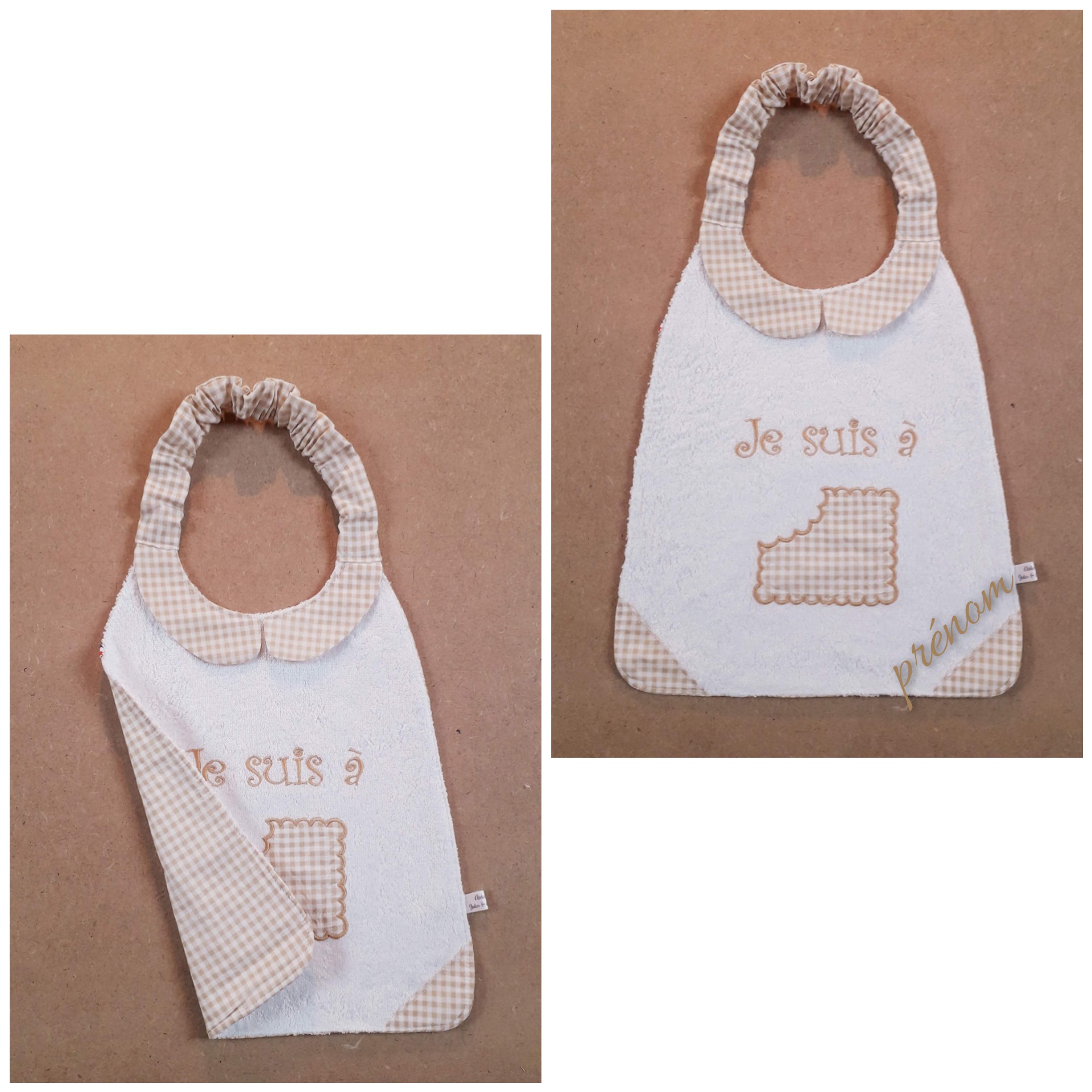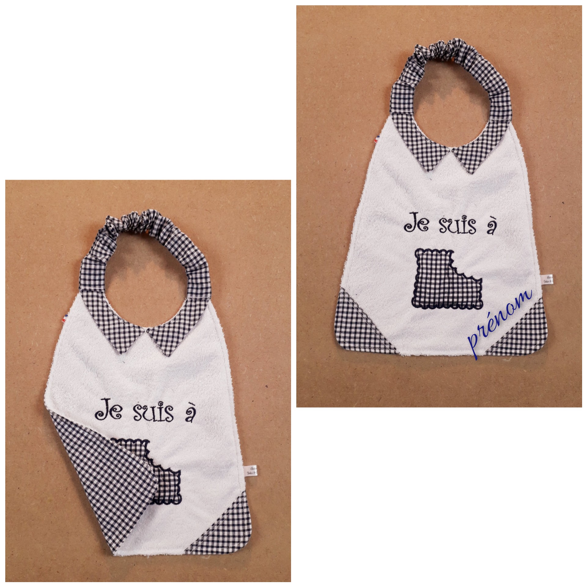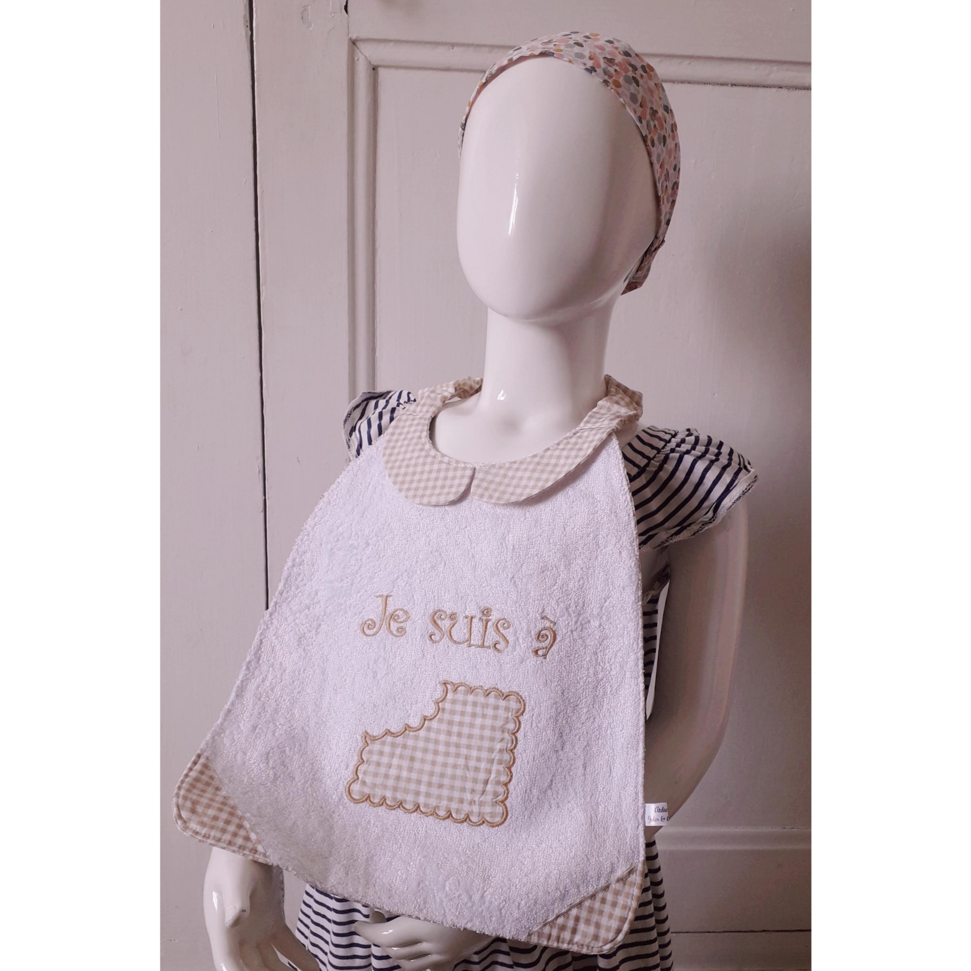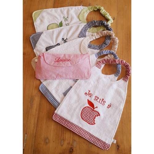 * recto en éponge de bambou blanche très douce! (autres couleurs disponibles sur demande), avec les coins et le col en vichy.