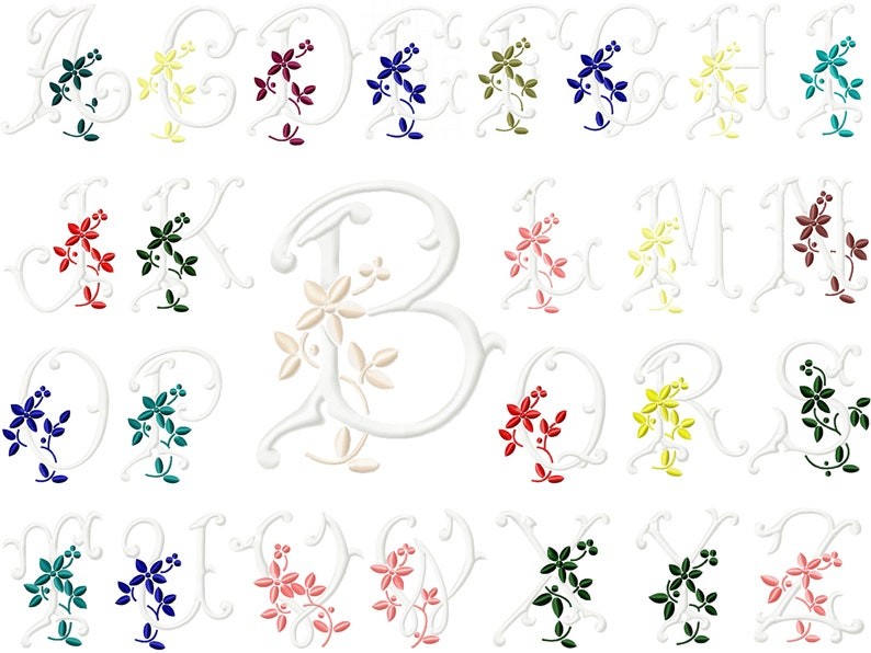 la lettre et les fleurs peuvent être de la même couleur ou de 2 couleurs distinctes