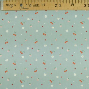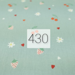 430 fraises / coeur / cerises / marguerites sur fond vert doux