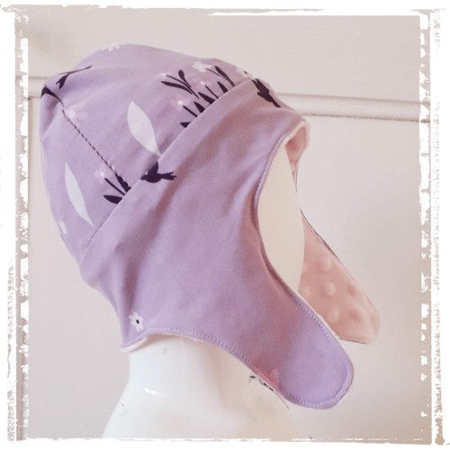 Petite pochette bi matière: extérieur en simili et doublure en tissu à motif.