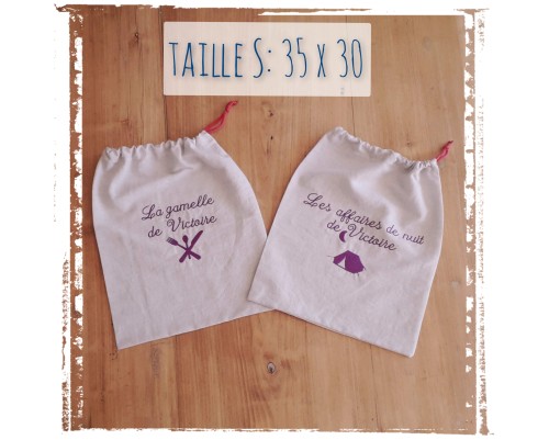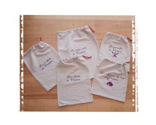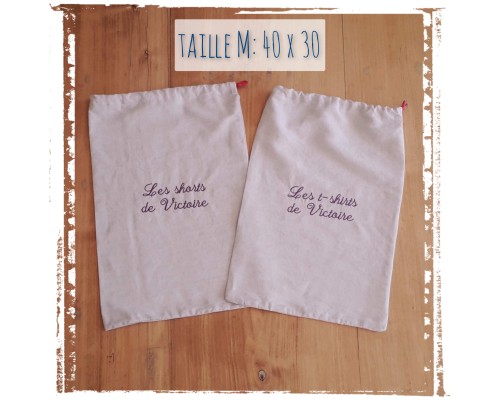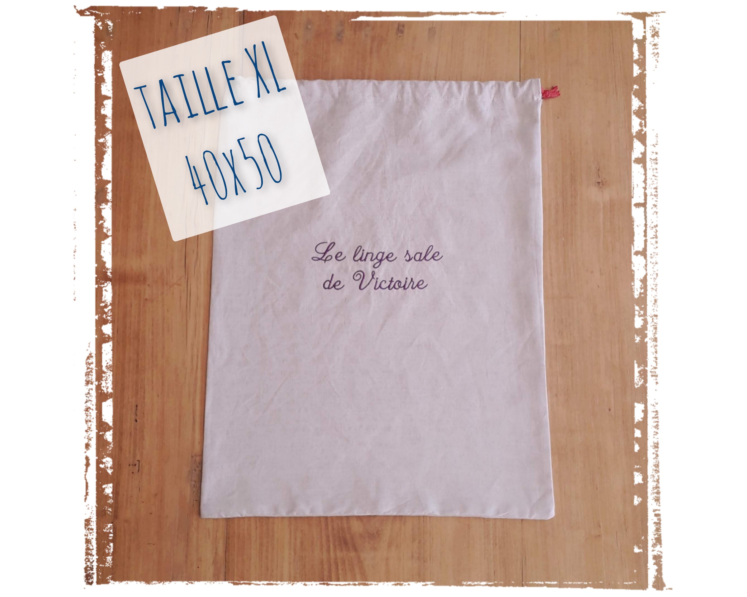 * 1 sac 40x50, broderie: "Le linge sale de PRENOM".