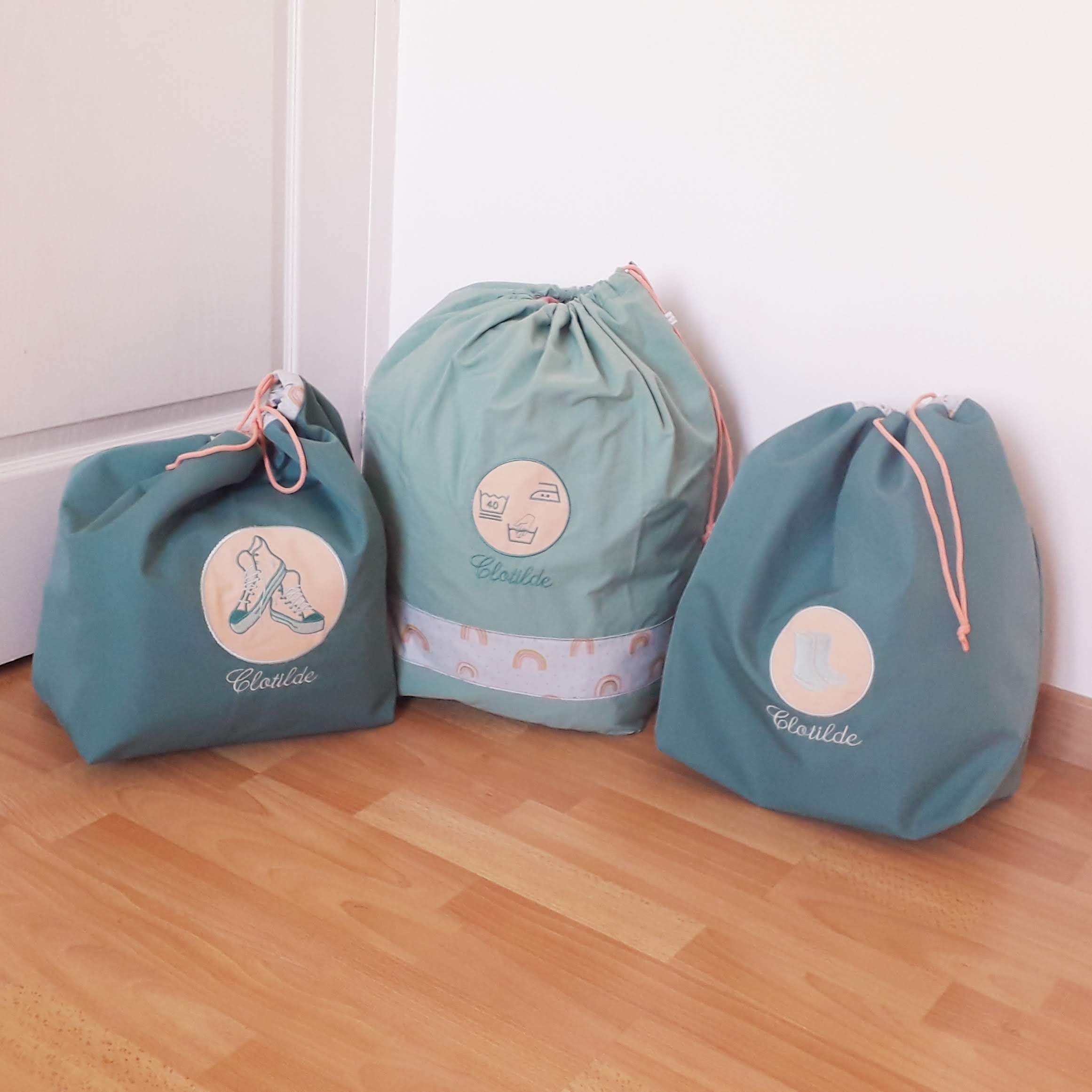 * pochon sous vêtement, 30x25, coton, bi colore, doublé, coulisse, 28€