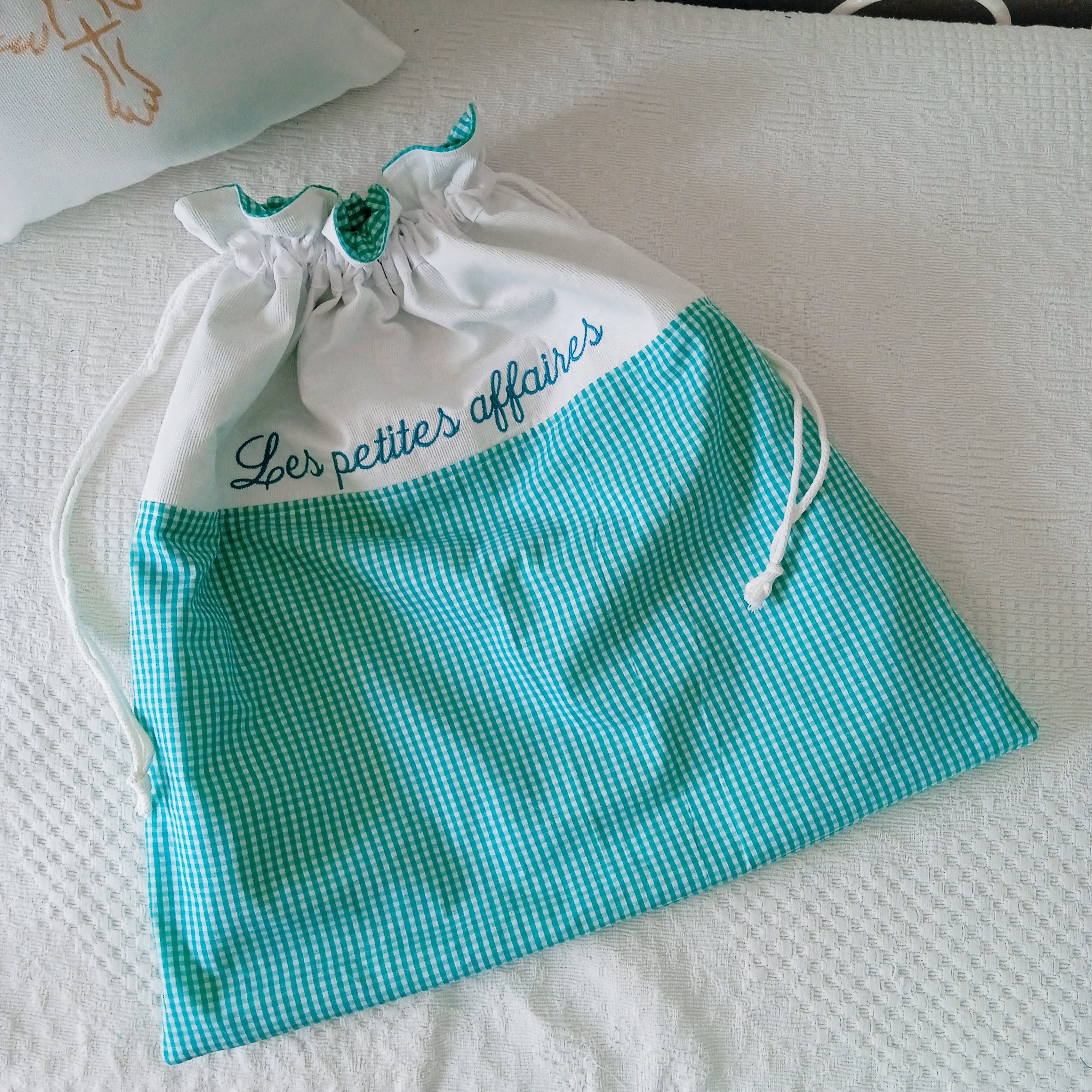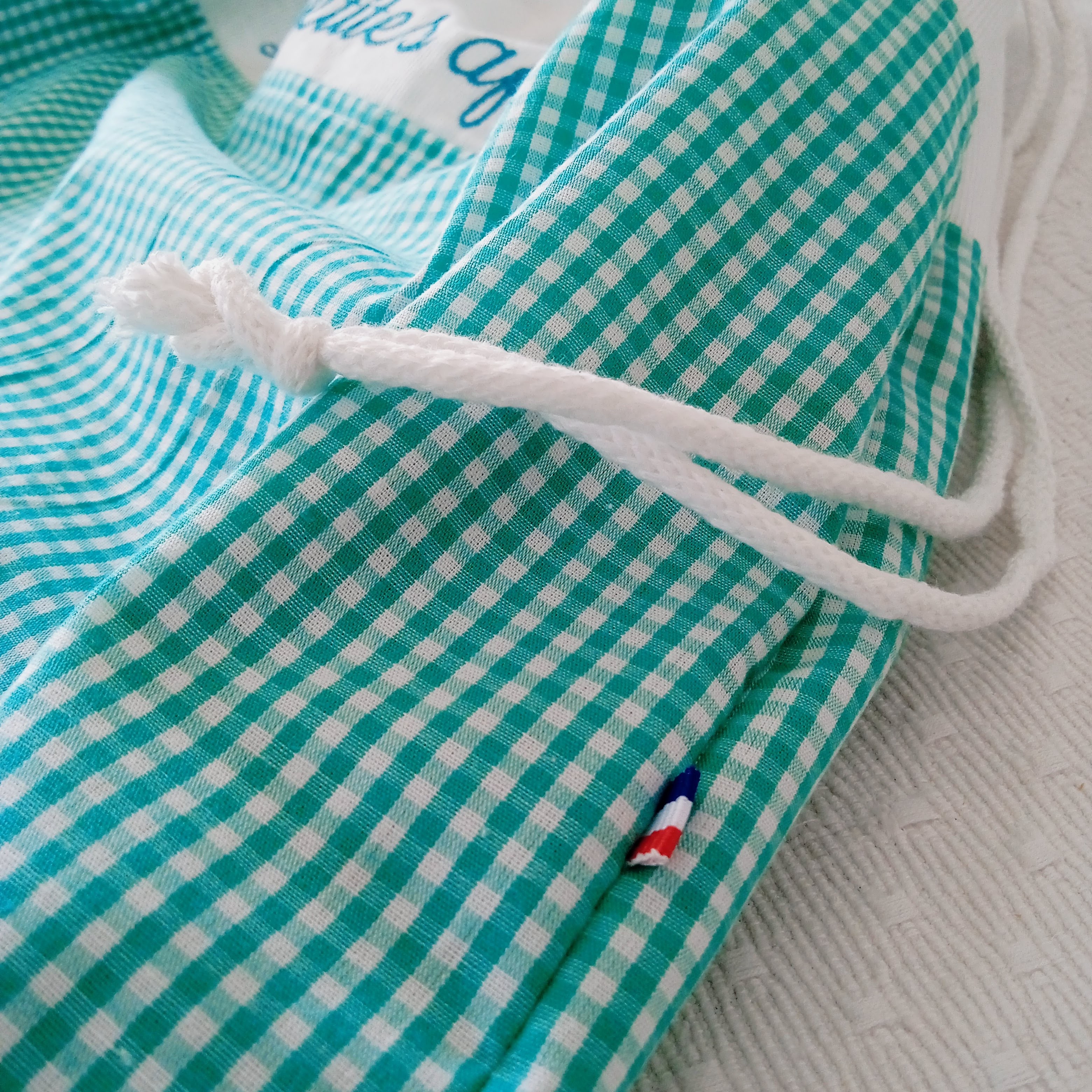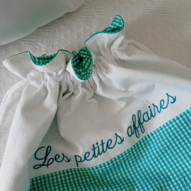 * haut uni en piqué de coton milleraies, avec broderie prénom