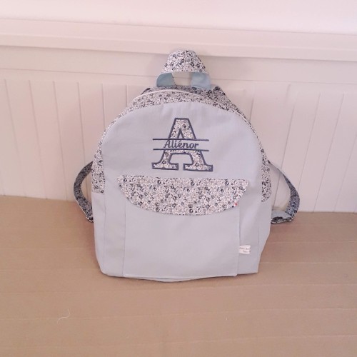 Petite pochette bi matière: extérieur en simili et doublure en tissu à motif.