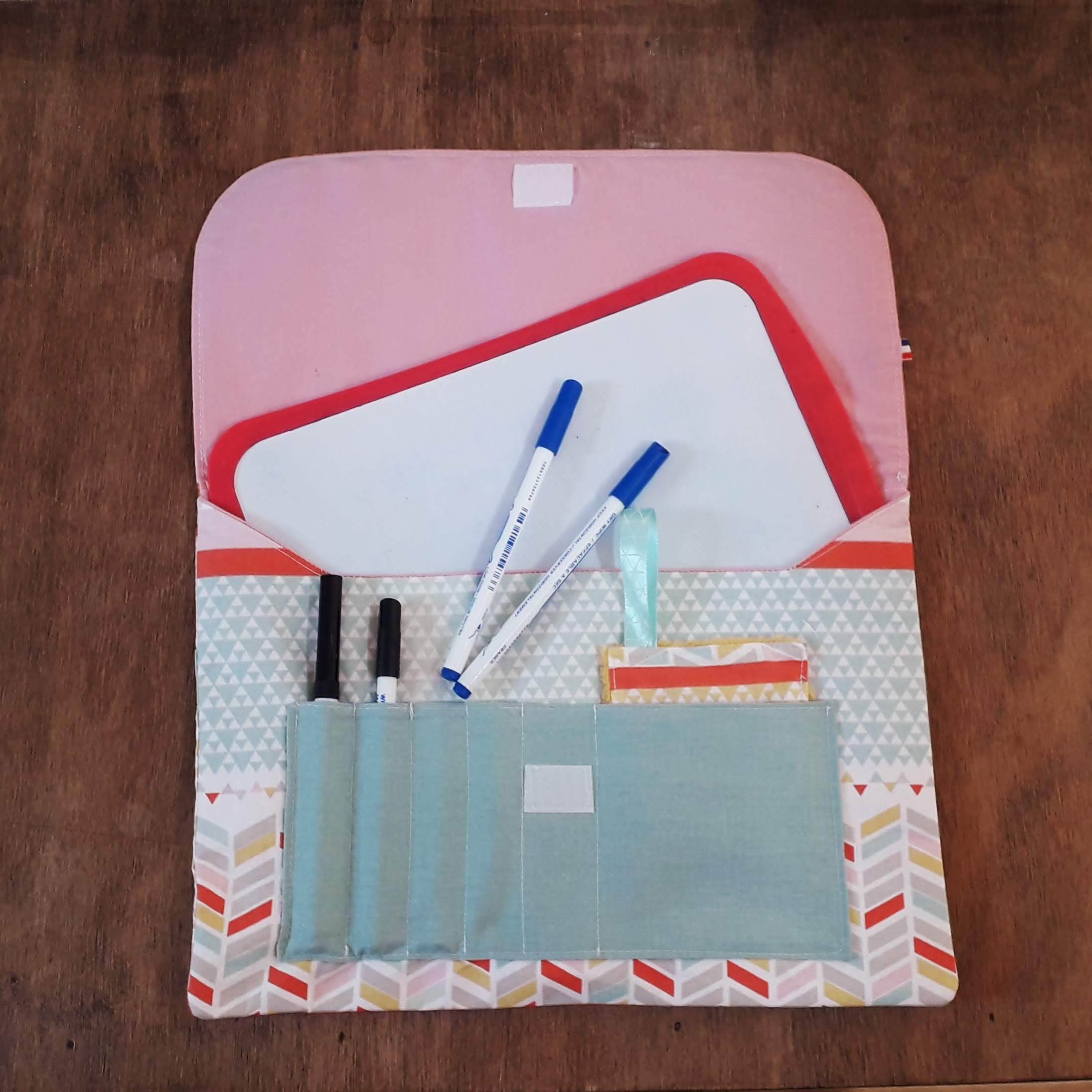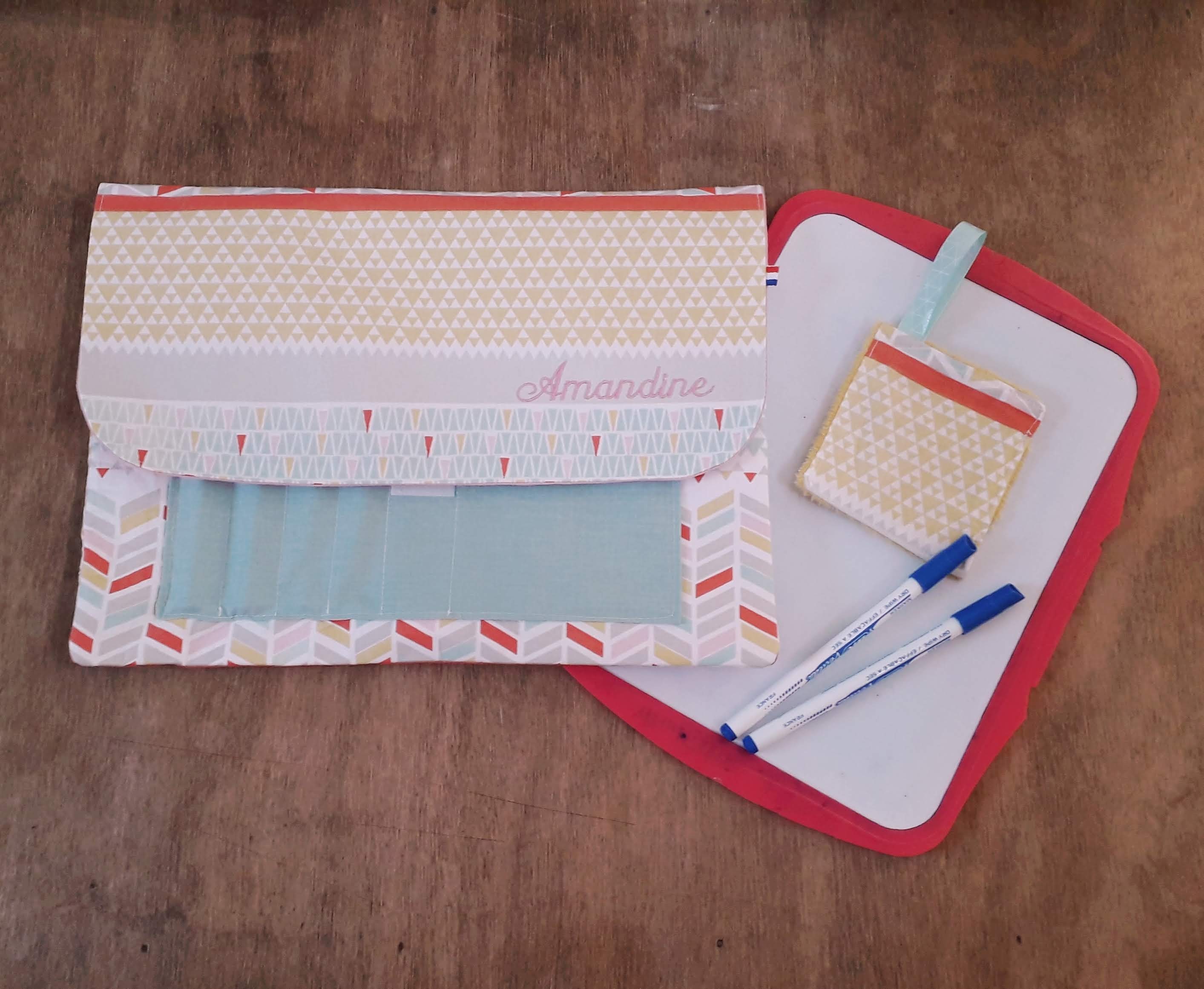 Idéale pour ranger tout le nécessaire ardoise, feutre et chiffon! Et hop! dans le cartable ou dans le pupitre.