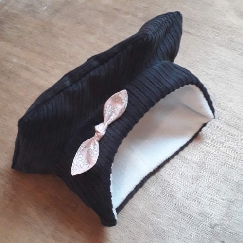 Accessoire anti courant d'air par execellence: le grand rabat cache oreille descend sur la nuque pour protéger les petits cous fragiles! (ce qui n'empêche pas de le protéger davantage avec le snood assorti !)