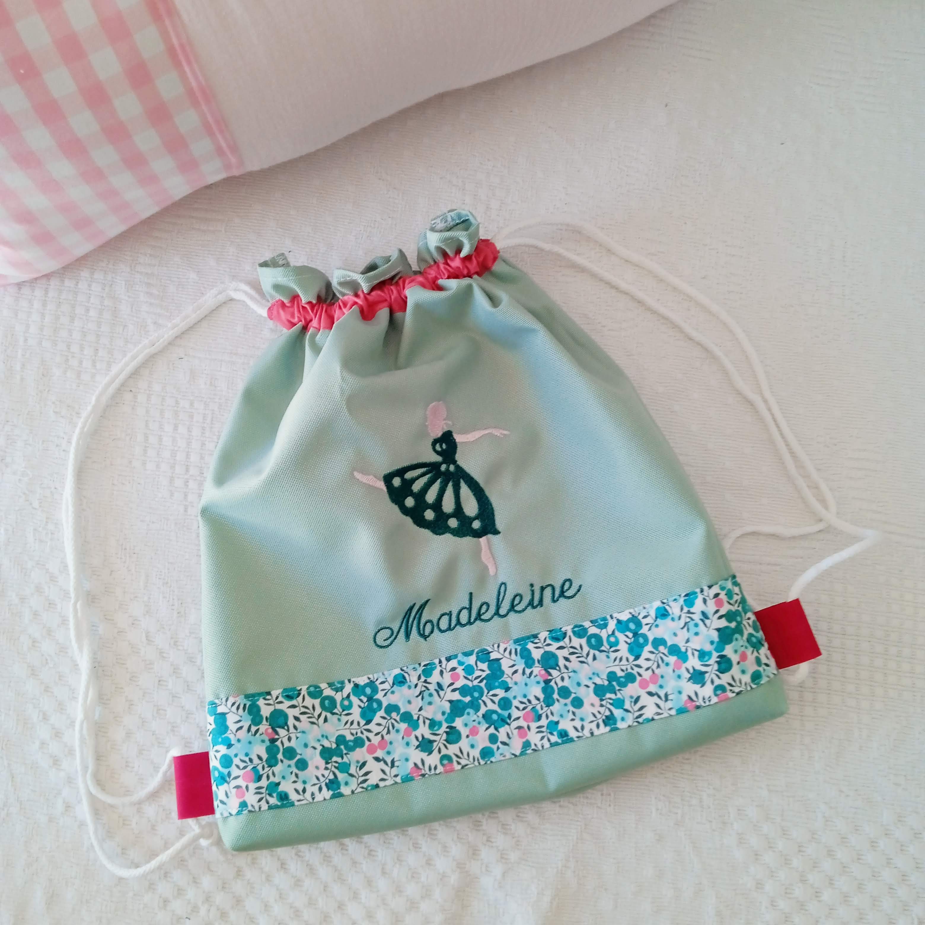 frise en tissu décoratif cousu dans le bas du sac ( = bande de tissu)