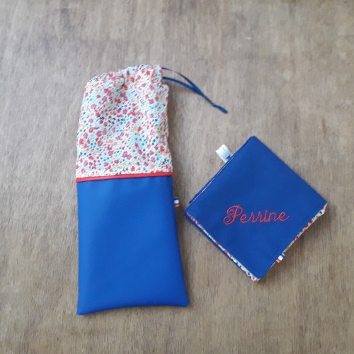 - Une pochette à coulisse bi matière: simili et tissu à motif (Liberty ou non)