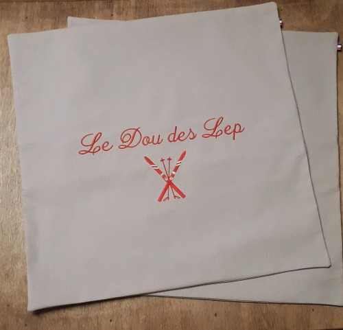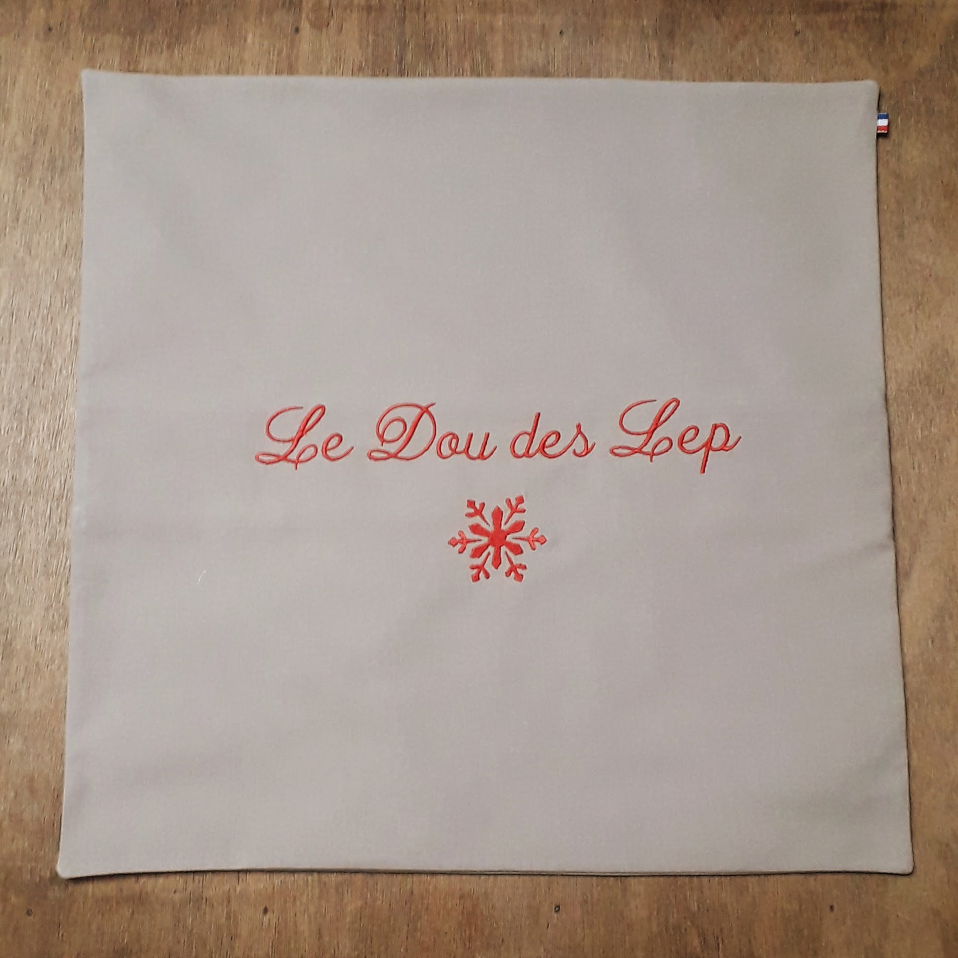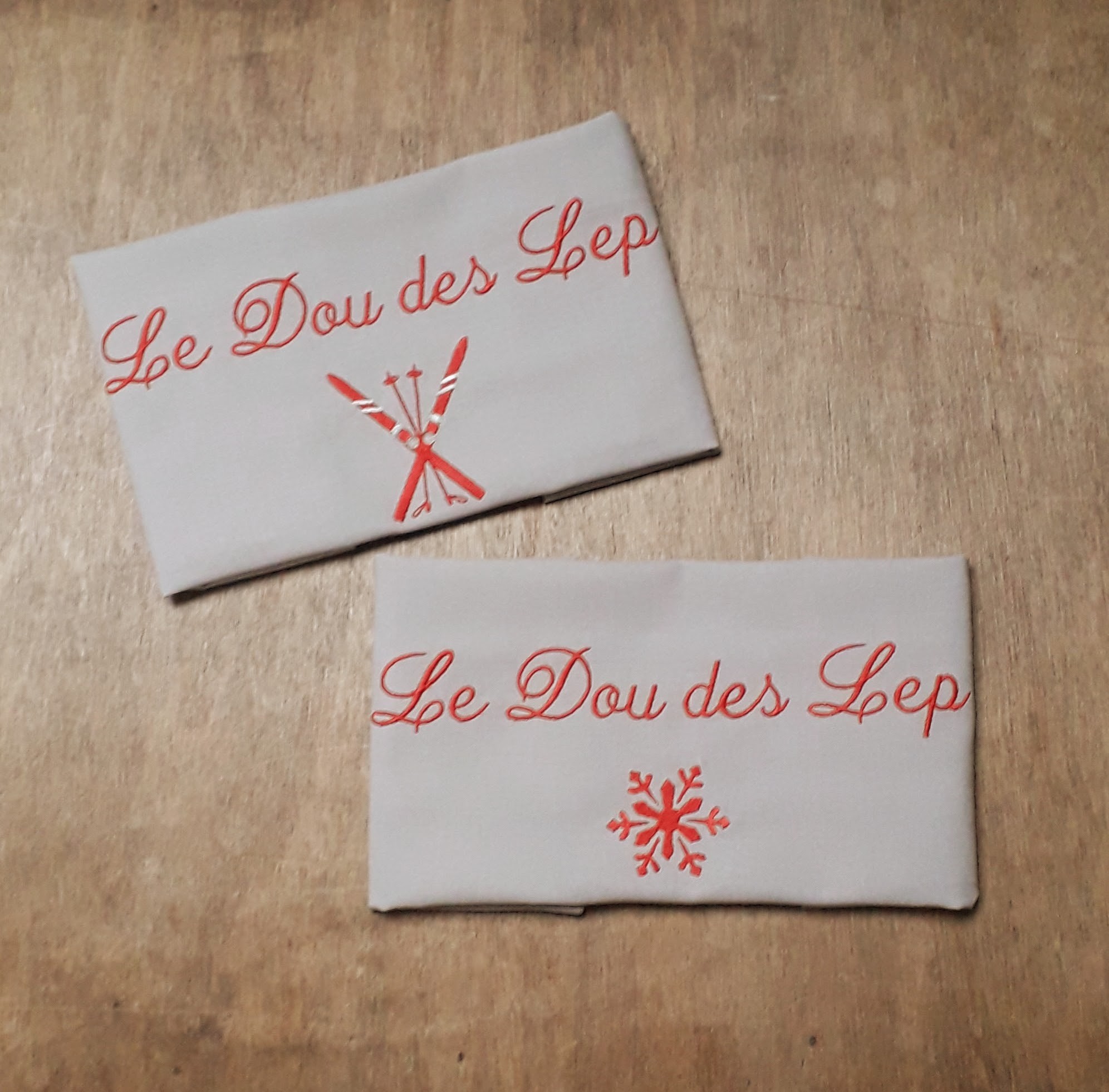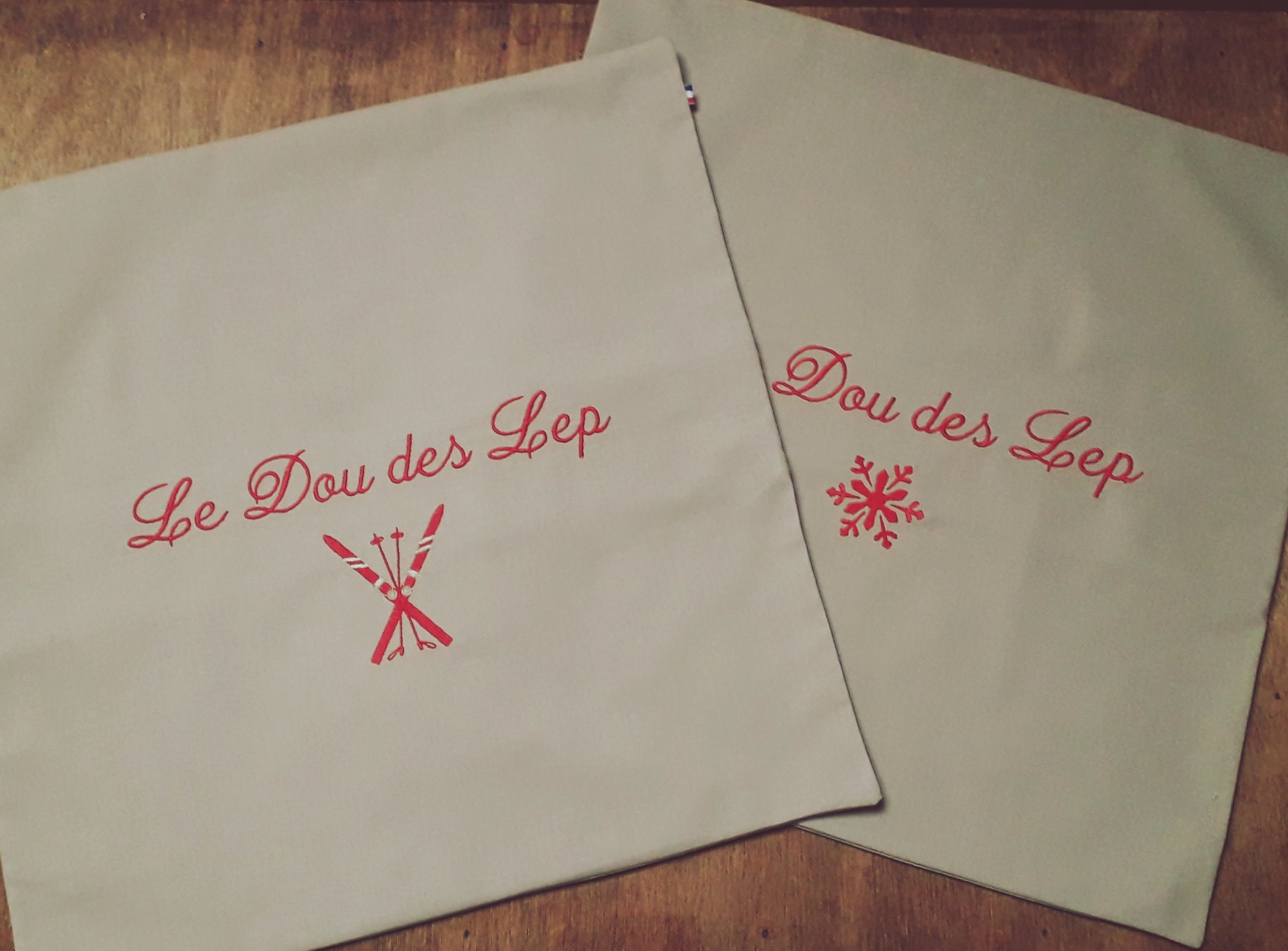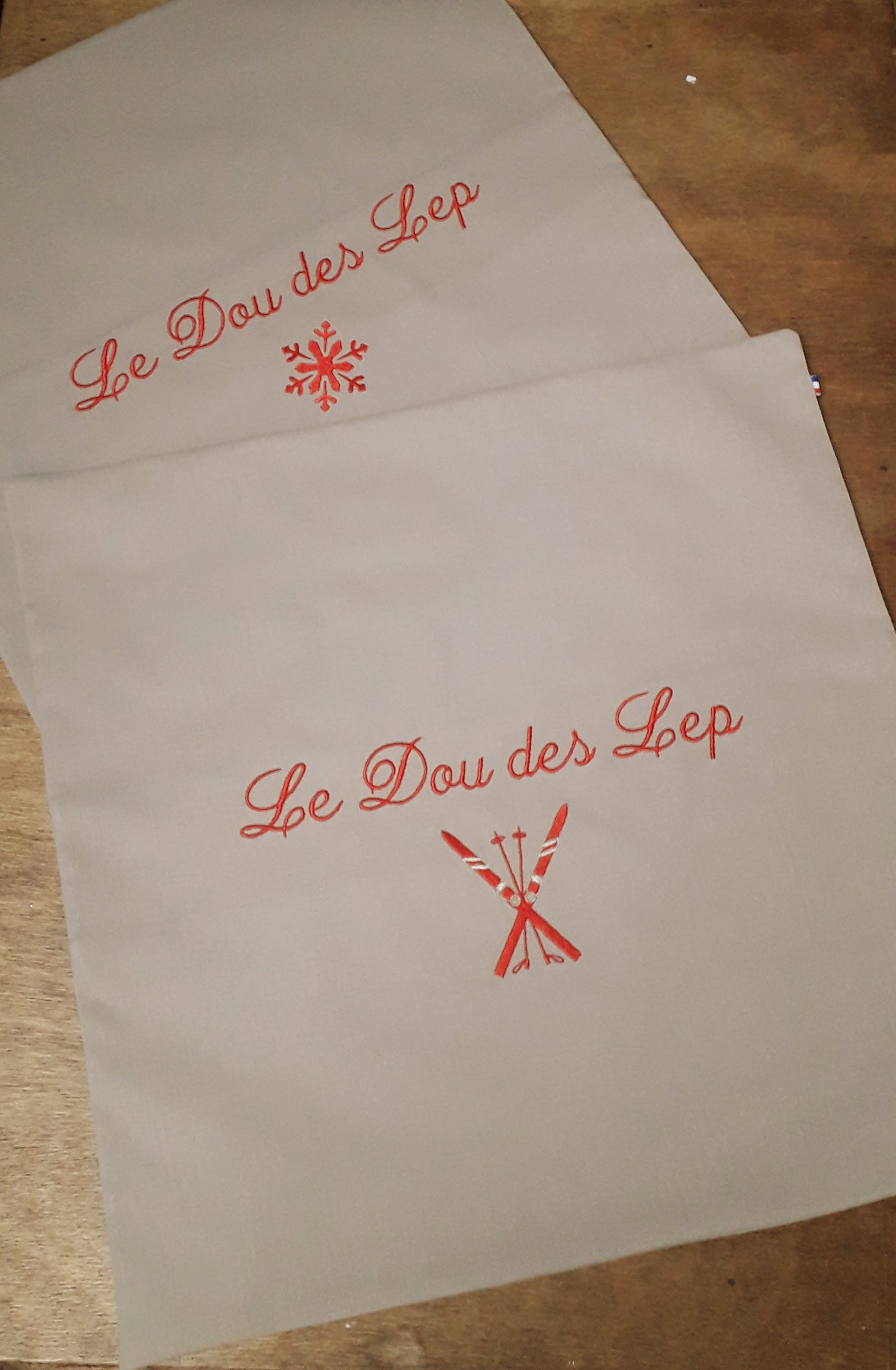 à personnaliser avec le nom du chalet et un joli dessin brodé (flocon ou paire de ski vintage, si vous recherchez un autre design, contactez moi)