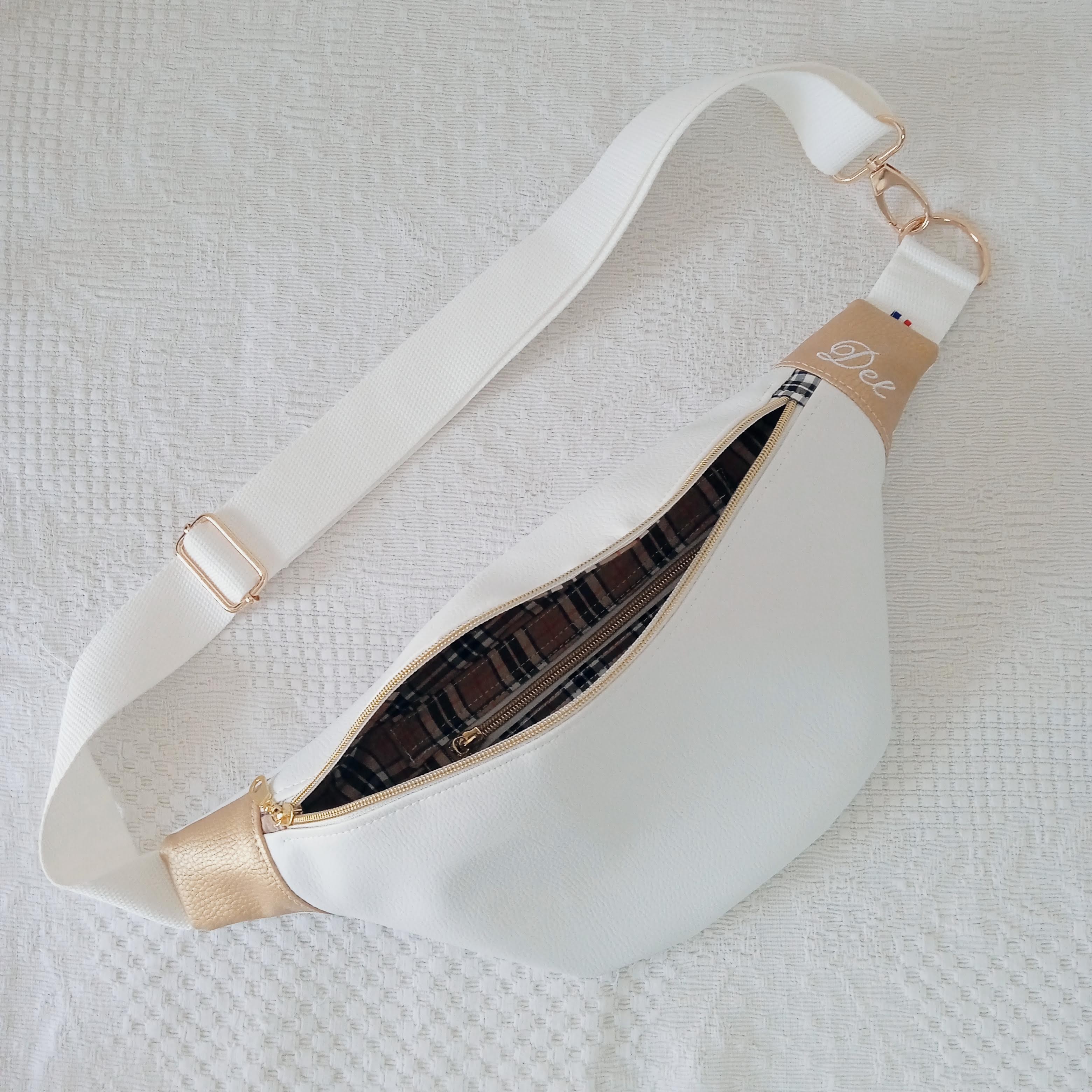bandoulière en sangle polypropilène de 3cm de large BLANCHE. la longueur est suffisante pour le porter en bandoulière. Elle est ajustable en longueur, et vous pourrez la porter de manière "tradi" autour de la taille si désiré!