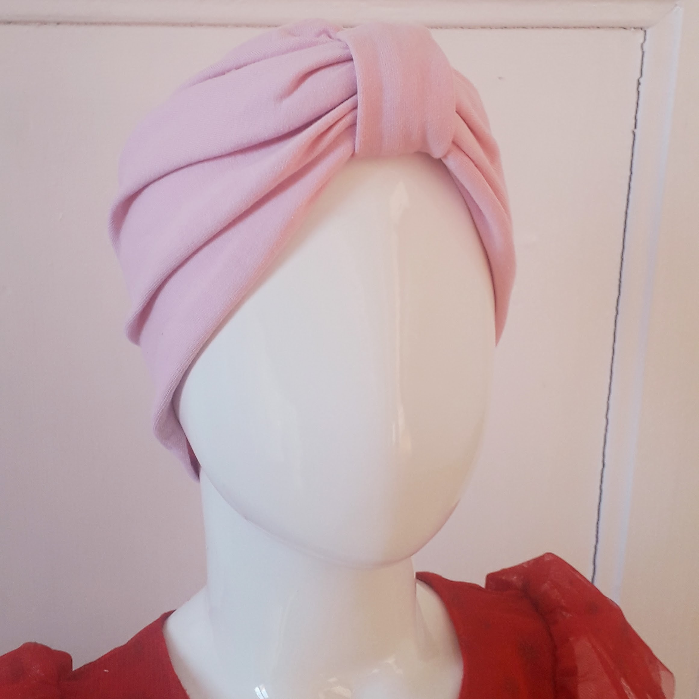 Bonnet façon turban en maille Milano extensible, couleur: blanc, rose ou marine