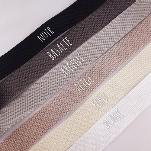 bandoulière en sangle polypropilène de 3cm de large. la longueur est suffisante pour le porter en bandoulière. Elle est ajustable en longueur, et vous pourrez la porter de manière "tradi" autour de la taille si désiré!