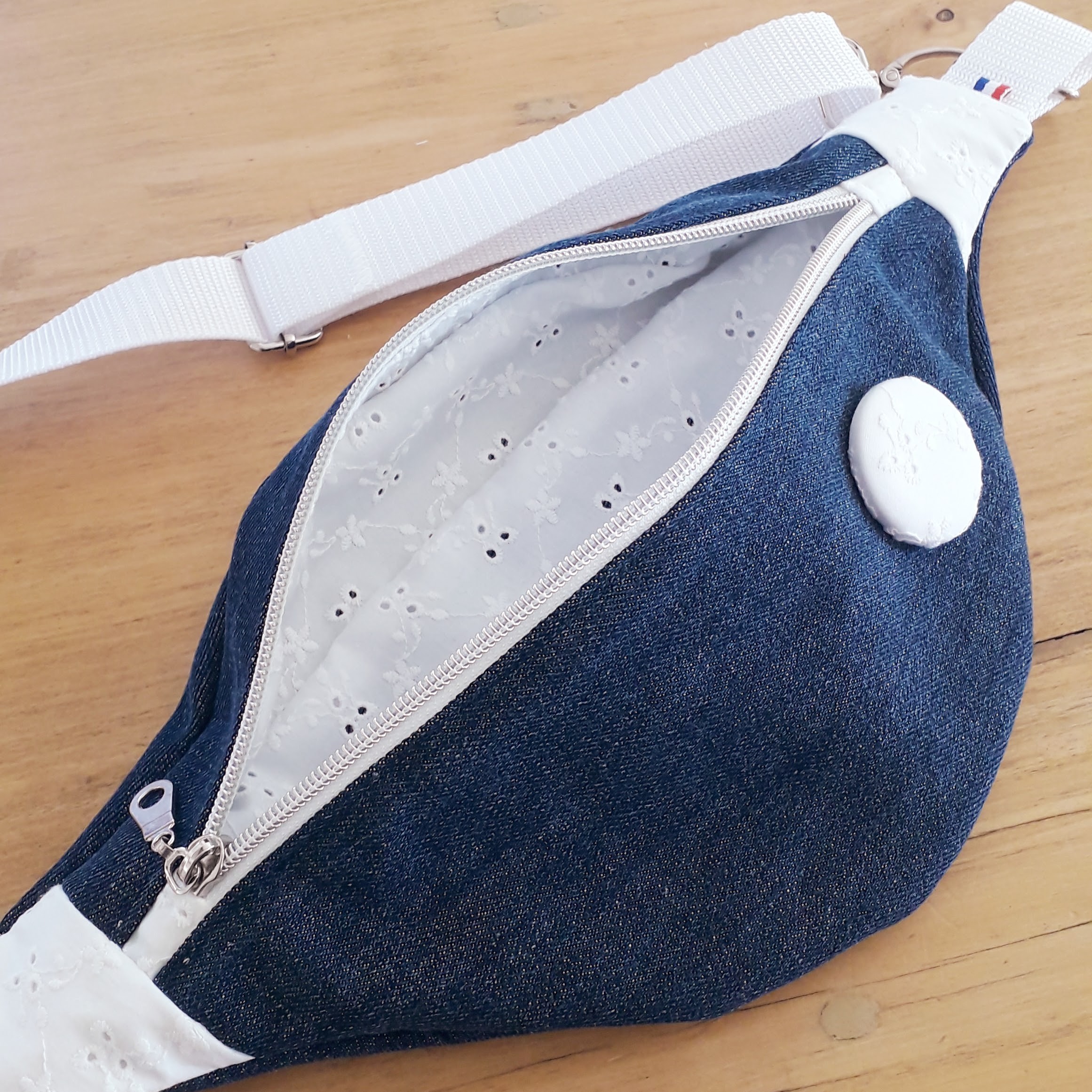 doublure et côtés extérieurs en coton broderie anglaise blanche.