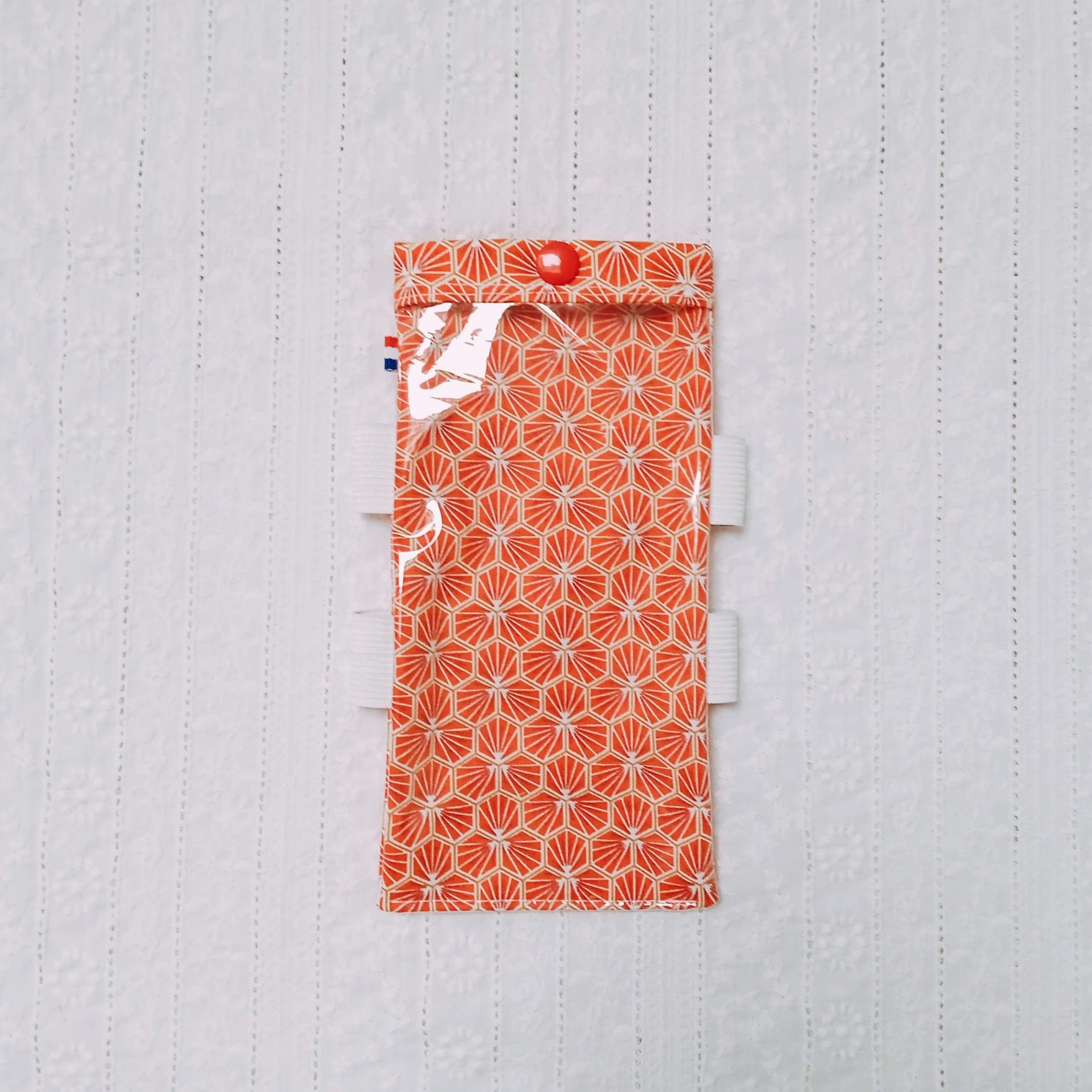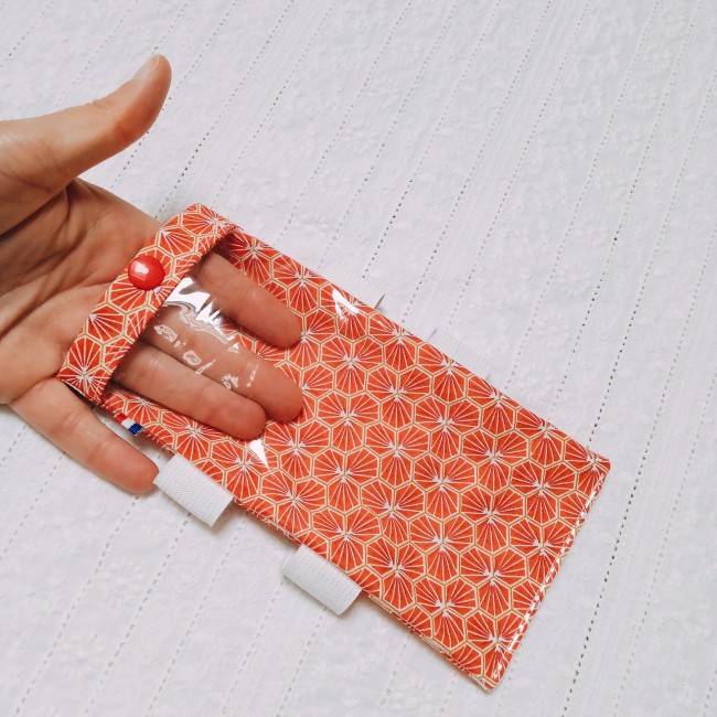 pochette avec fenêtre en plastique transparent permettant de conserver le côté tactile de l'écran du mobile