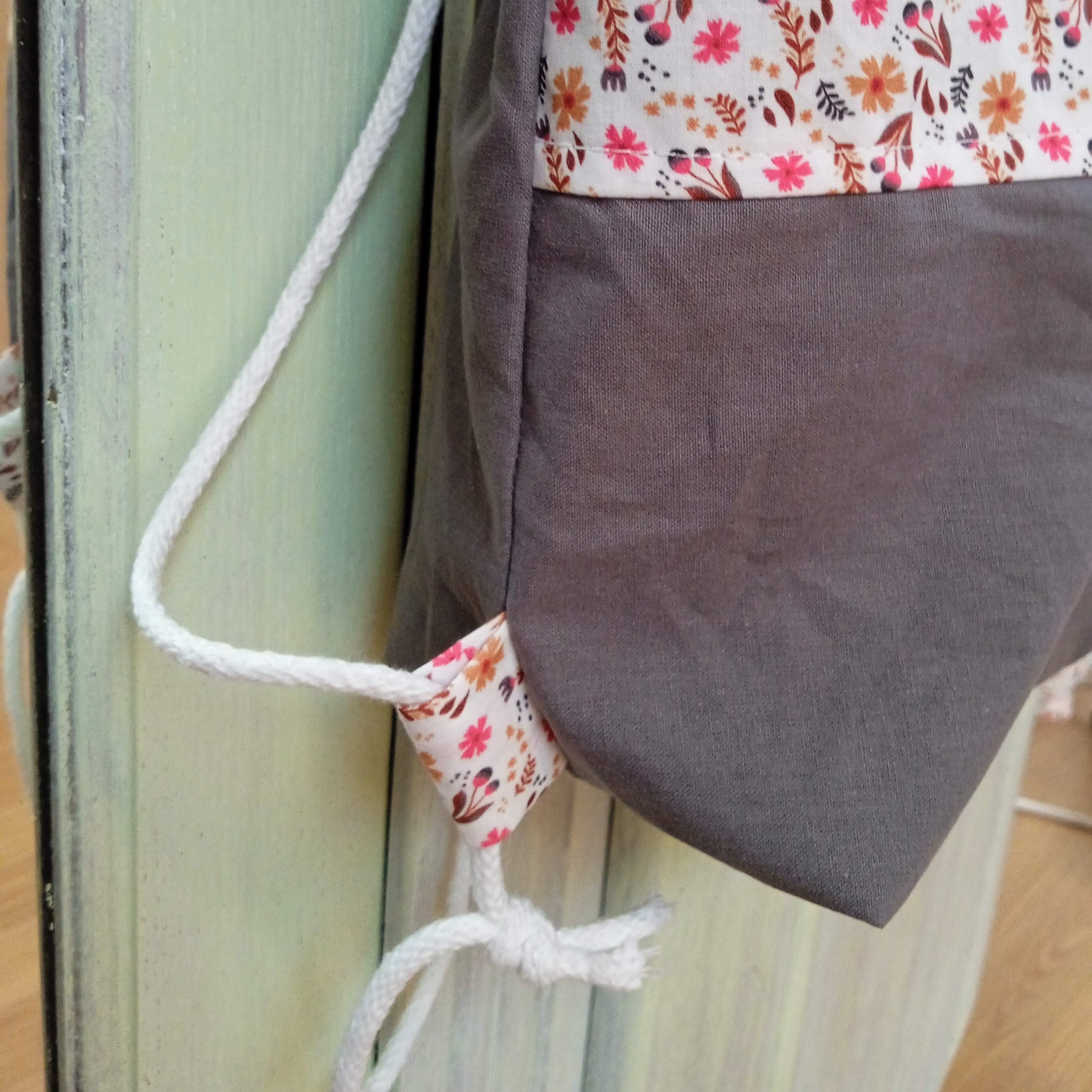 simple et efficace! le cordon a un rôle de 2 en 1! à la fois bretelle et cordon de serrage du sac :)