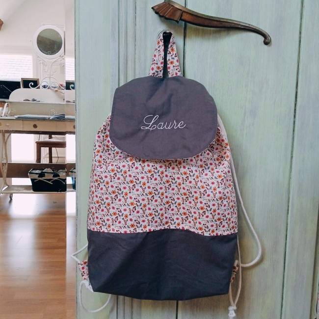 ensuite vous pouvez décider d'ajouter la broderie d'un prénom sur le rabat du sac à dos.