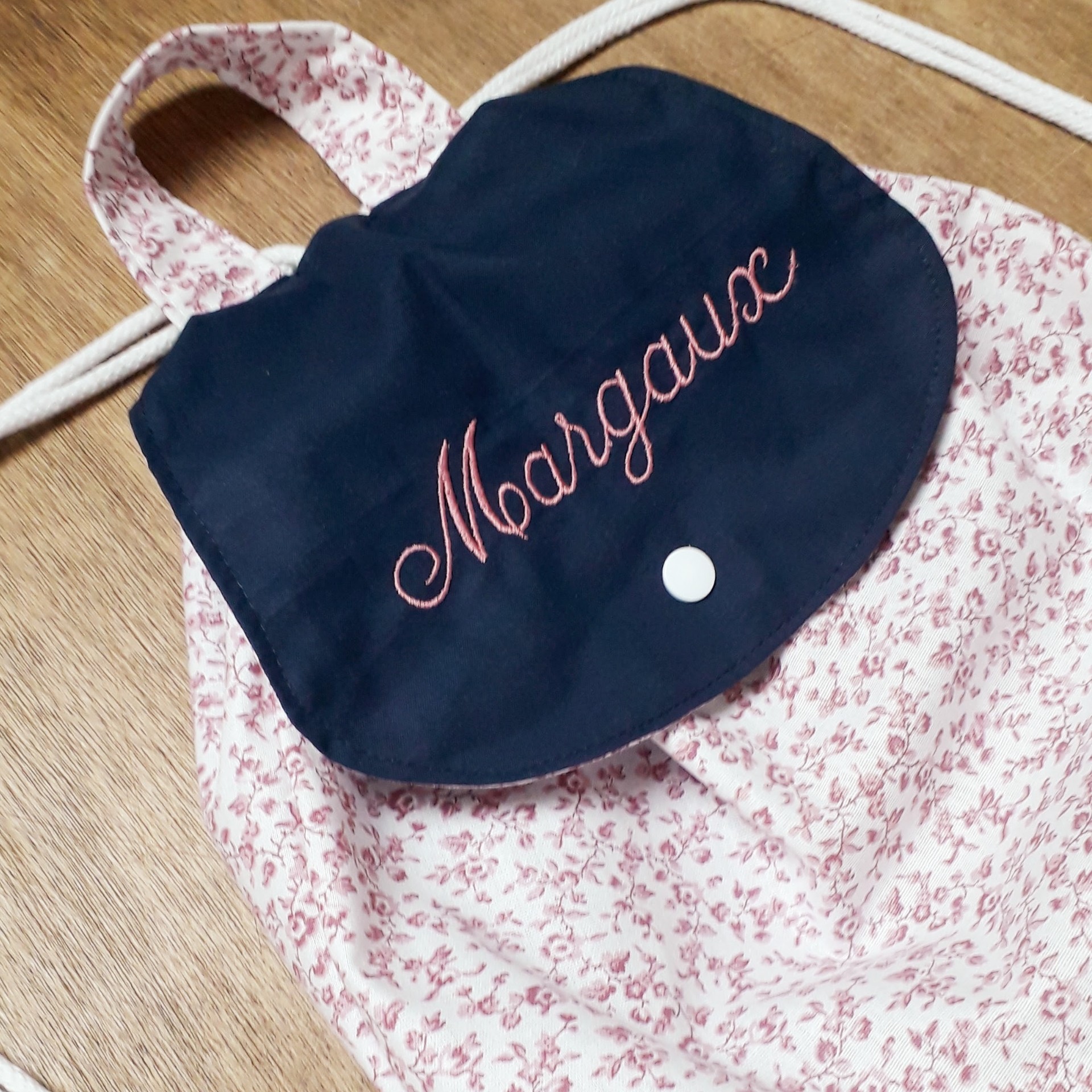 ensuite vous pouvez décider d'ajouter la broderie d'un prénom sur le rabat du sac à dos.