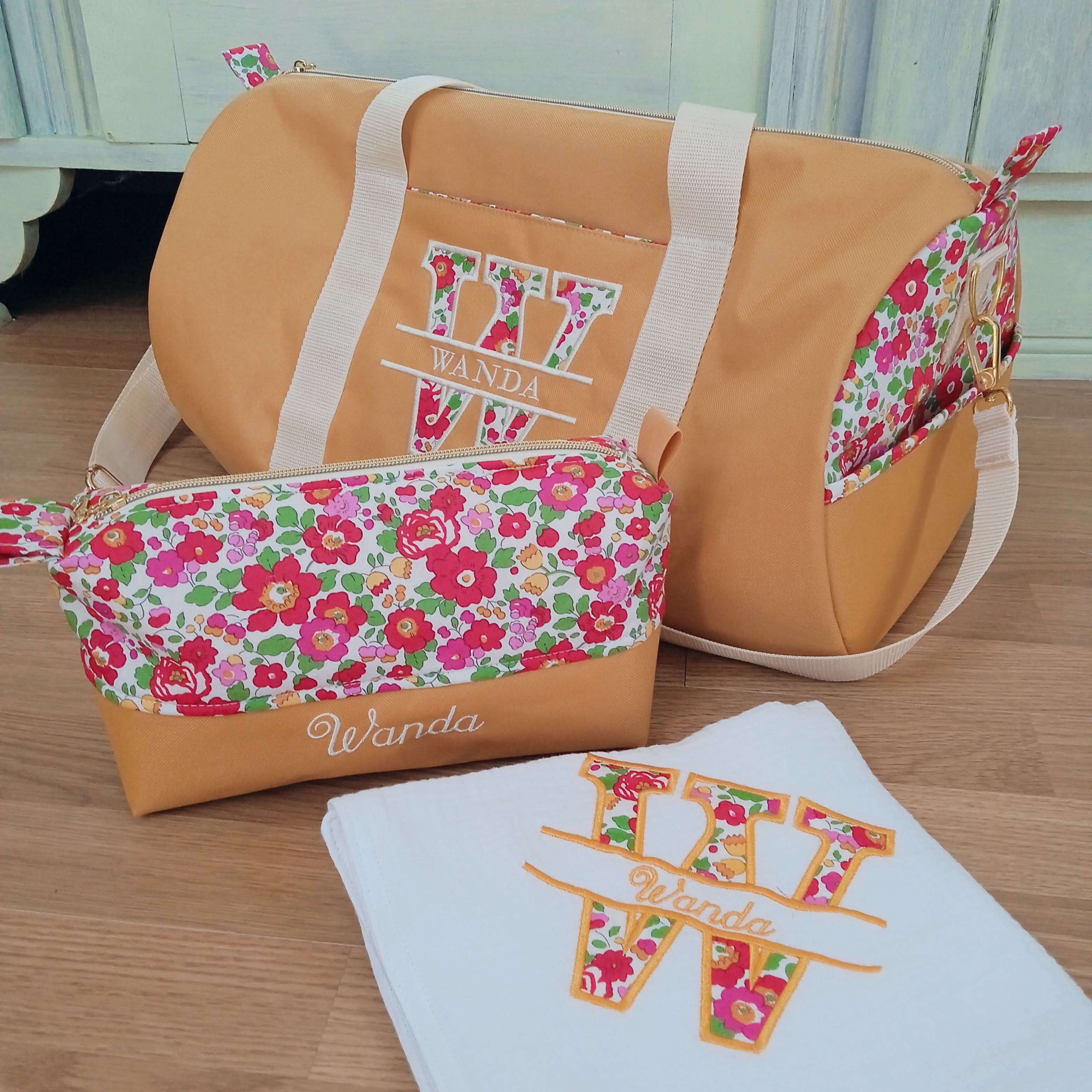 Personnalisation de l'ensemble sac polochon et trousse de toilette assortie: