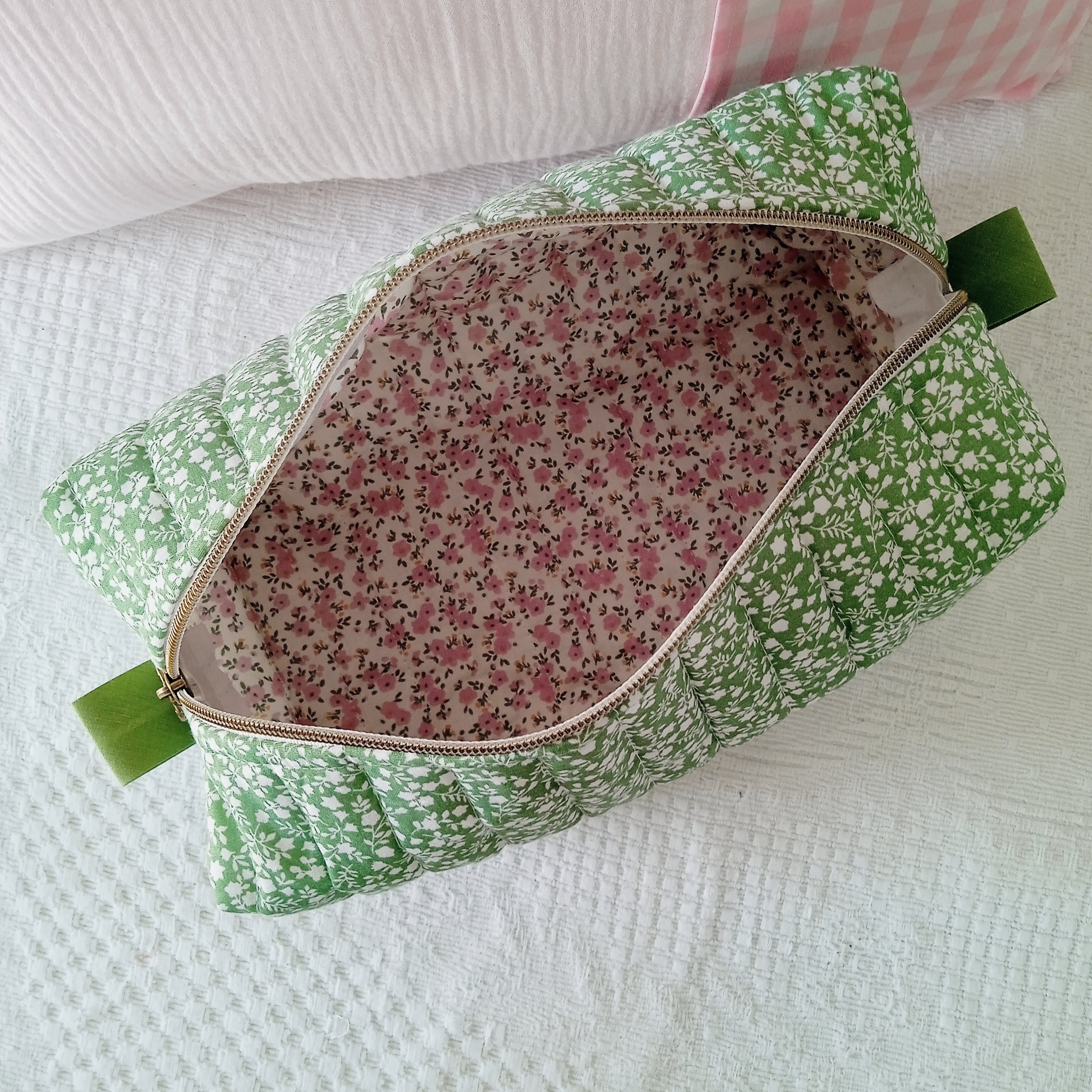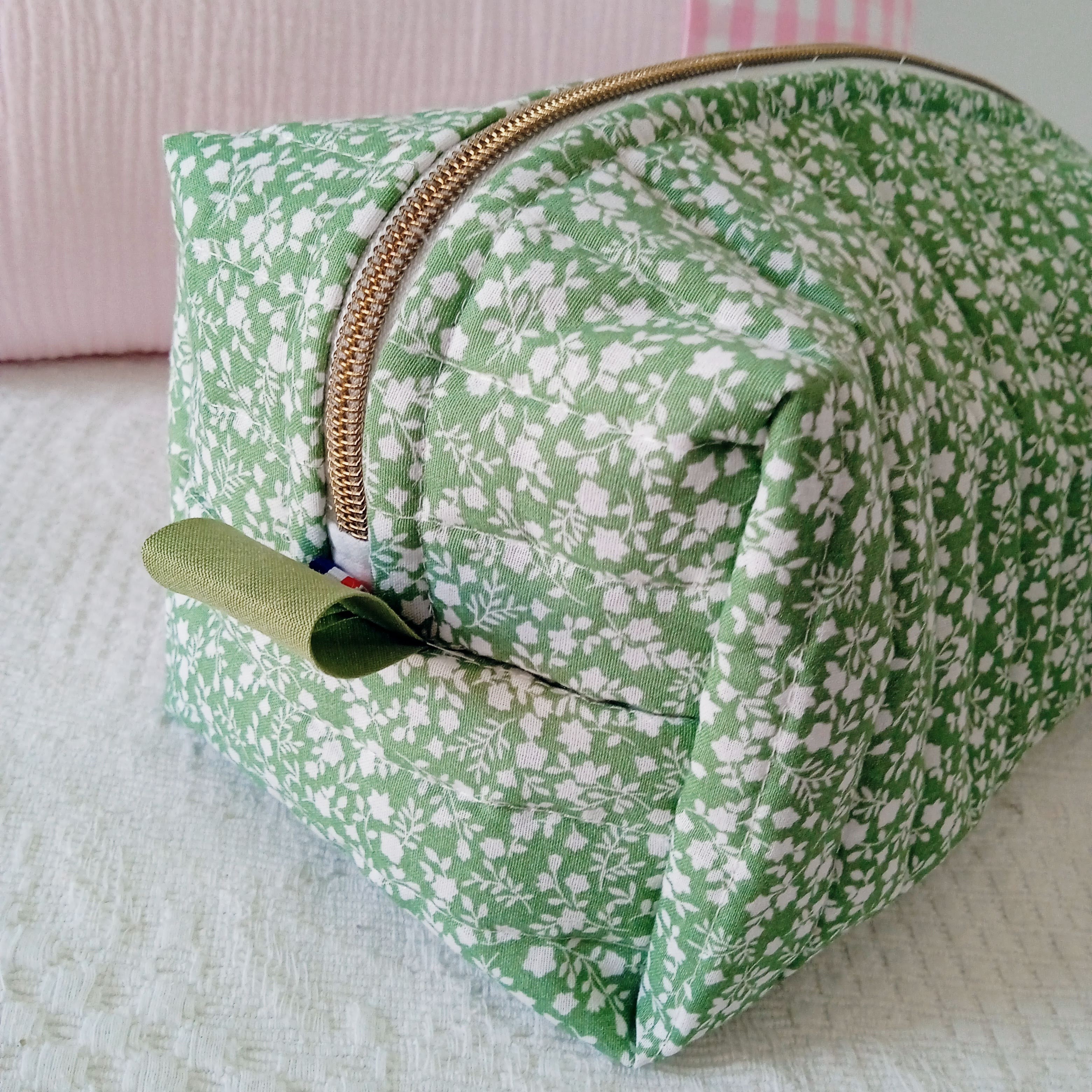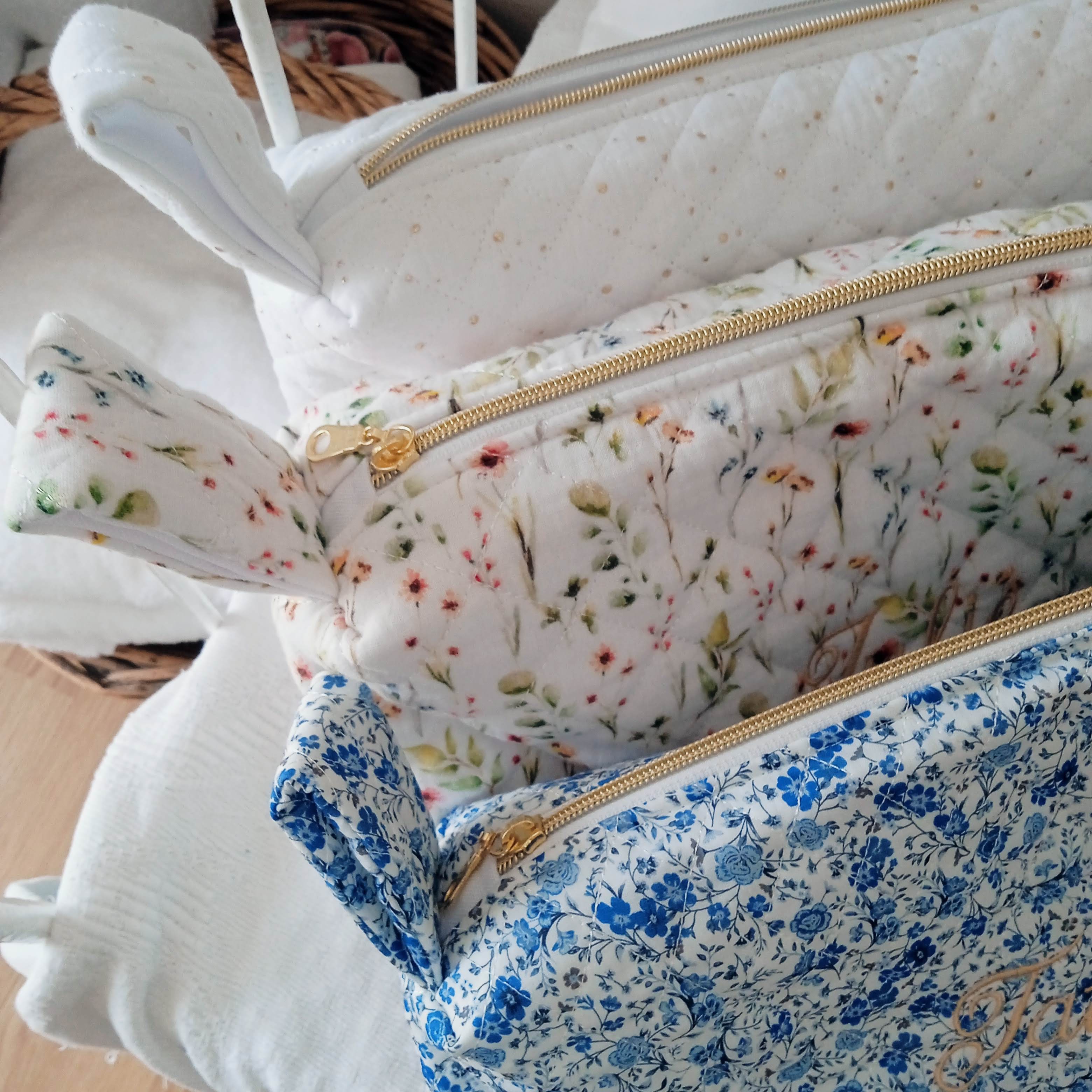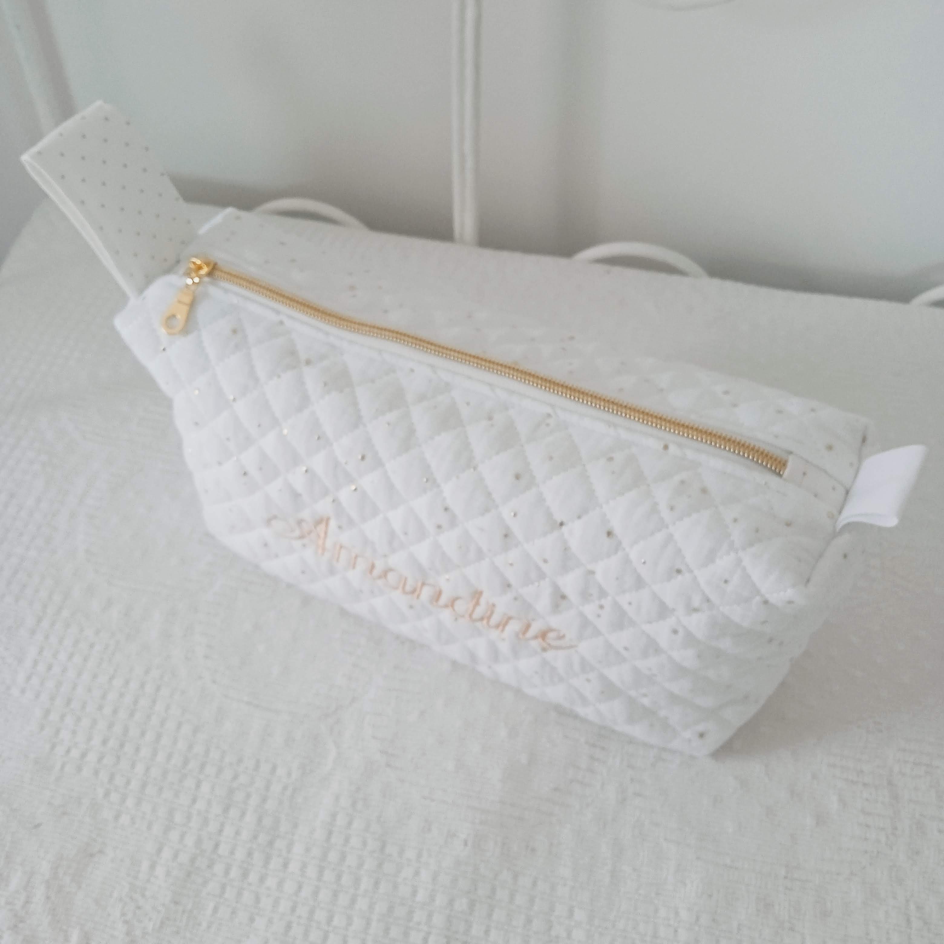 personnalisation de la trousse de toilette "ASTRID" en double gaze matelassée: