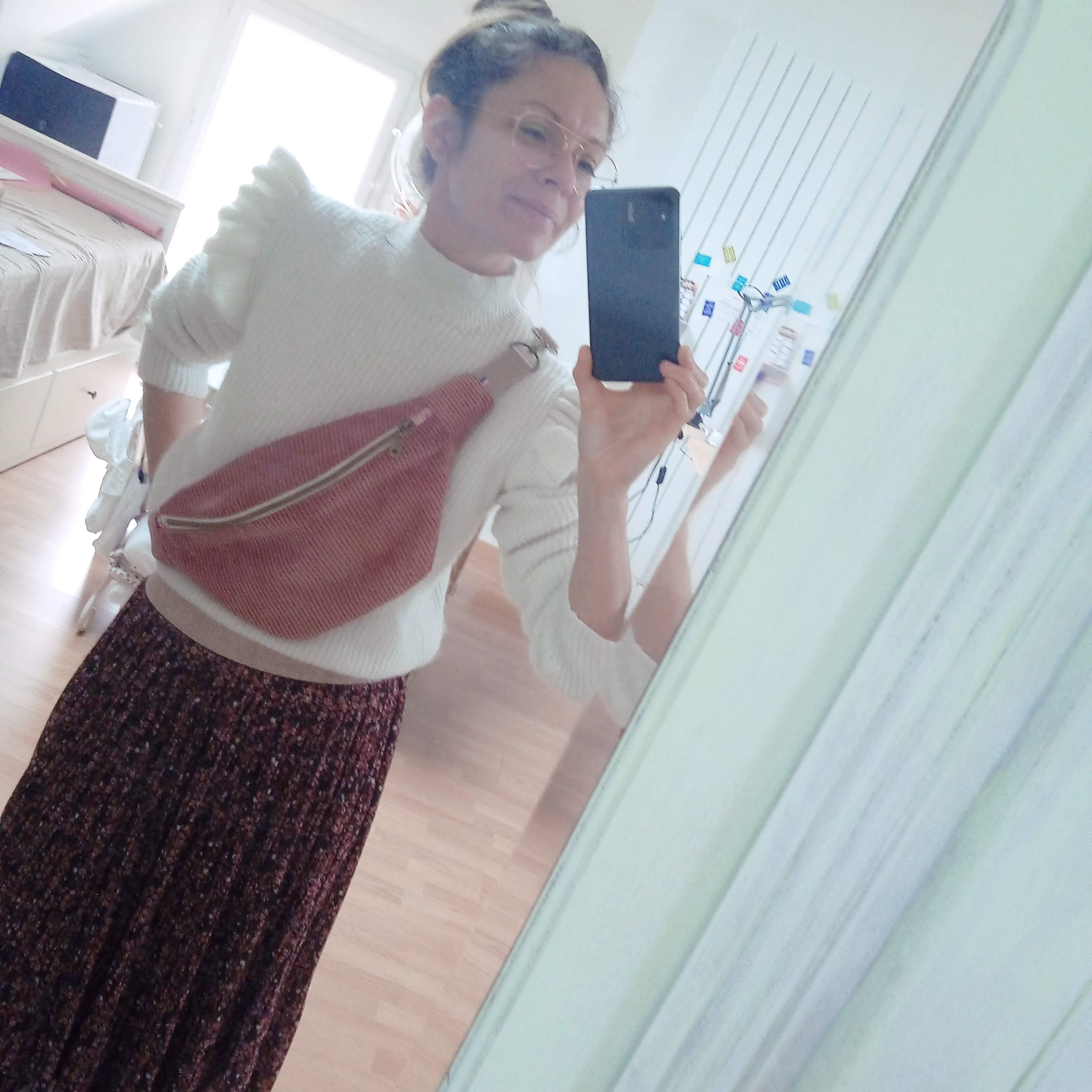 Personnalisation du sac banane bandoulière XL en velours côtelé