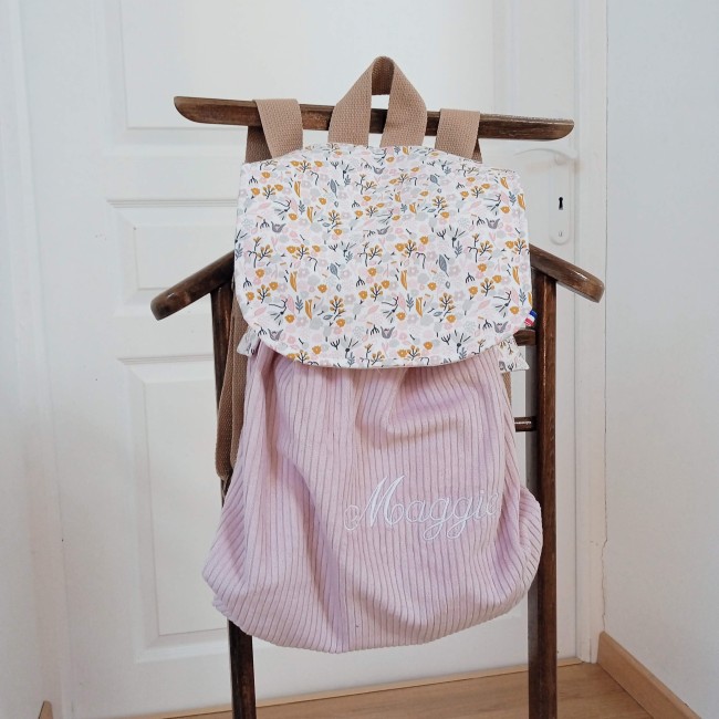 Voilà un joli petit à dos enfant entièrement fait main et personnalisé selon vos souhaits!
