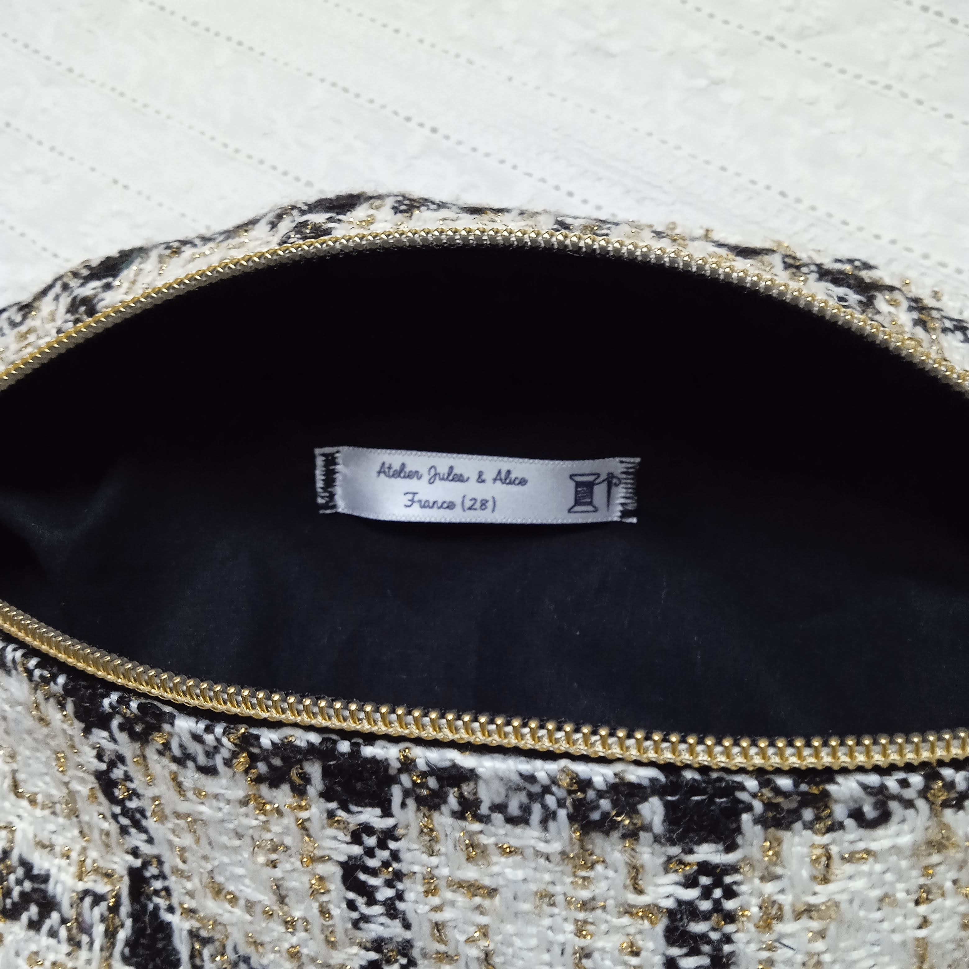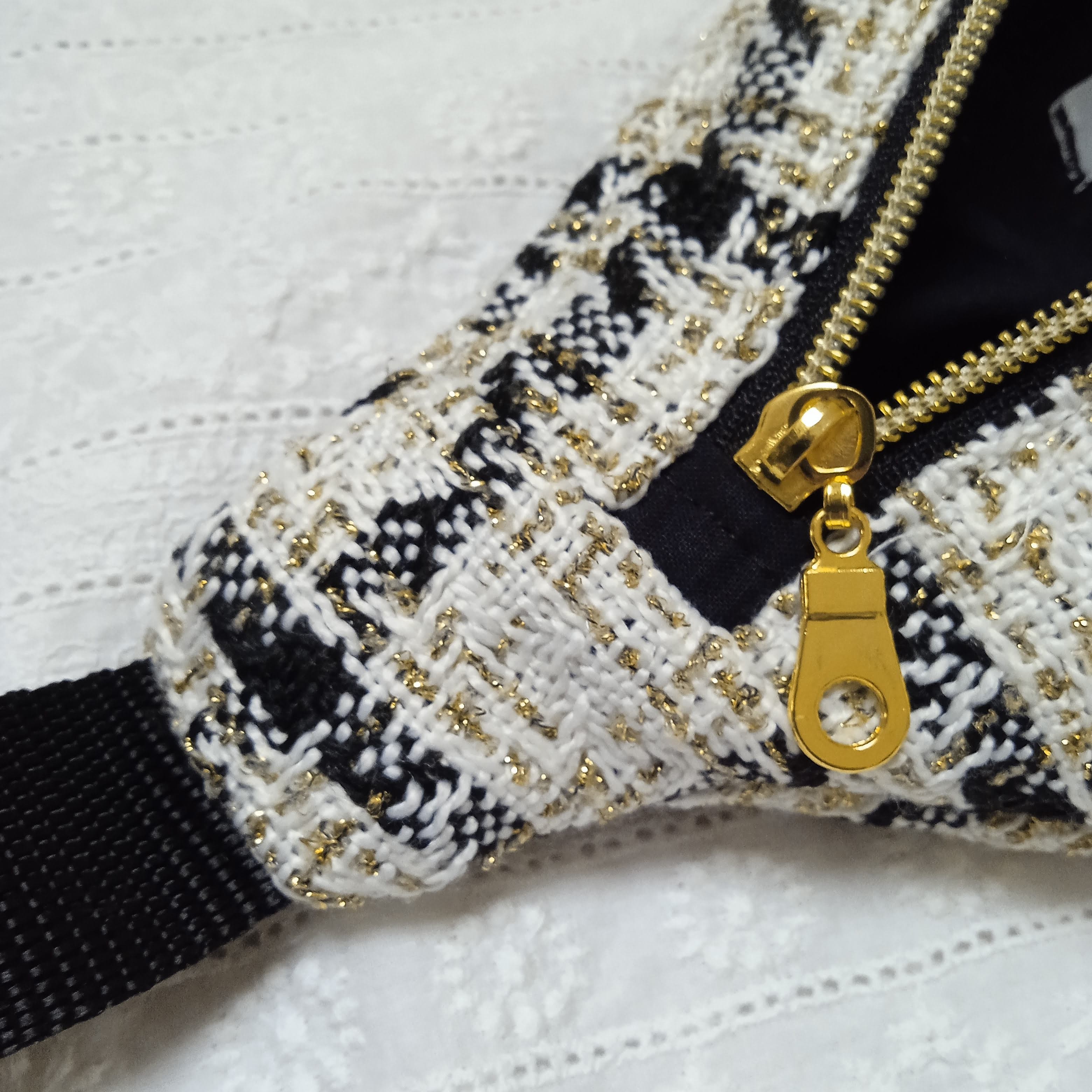 extérieur en tweed noir blanc et or