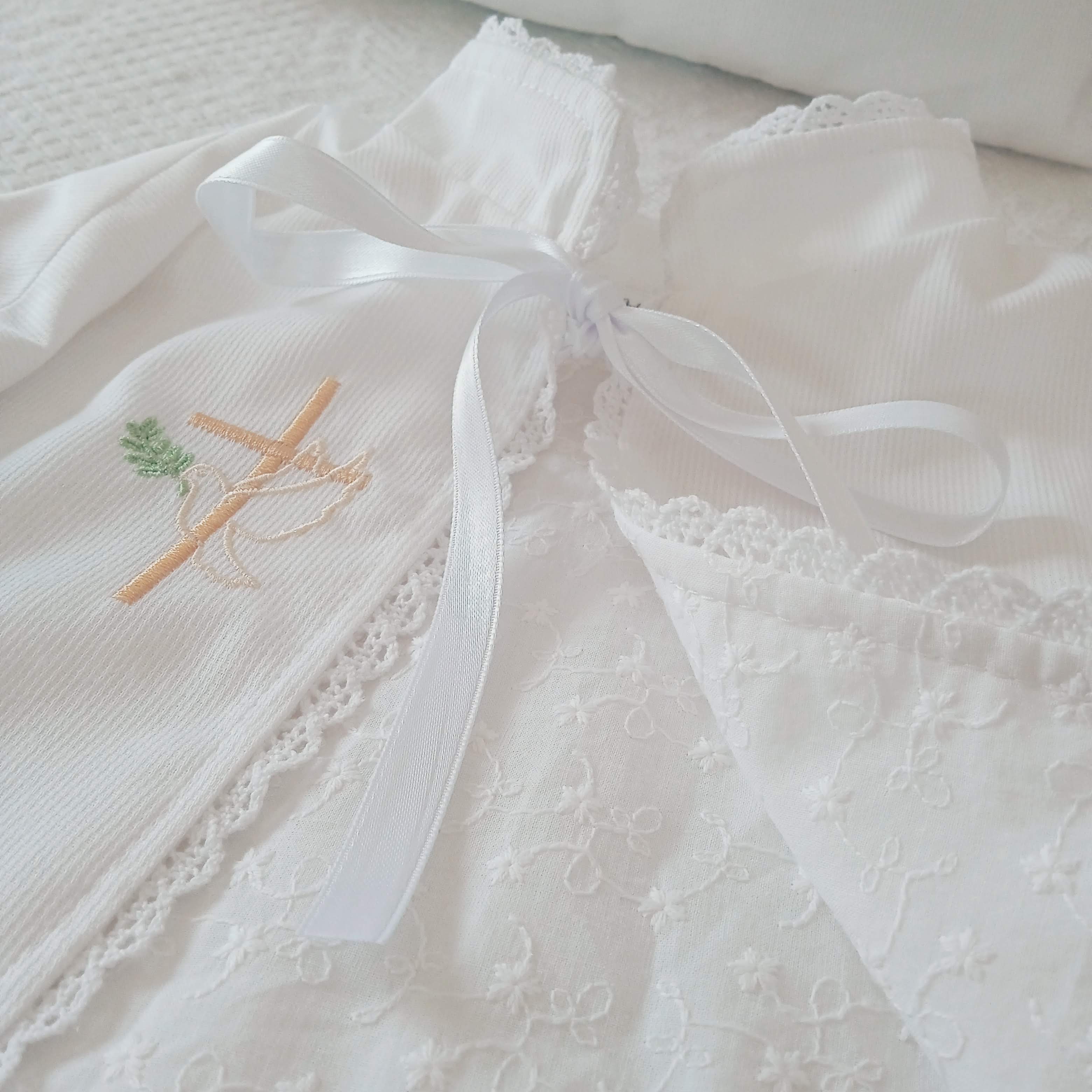 Pratique, élégante et symbolique, cette cape de baptême pour bébé est un choix idéal comme cadeau de baptême. Chaque pièce est réalisée avec soin et amour pour accompagner votre enfant dans ce sacrement et rester un souvenir précieux pour les années à venir.