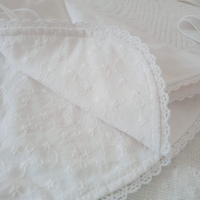 Cape de baptême, toute simple, sans capuche, avec élégante doublure en broderie anglaise.