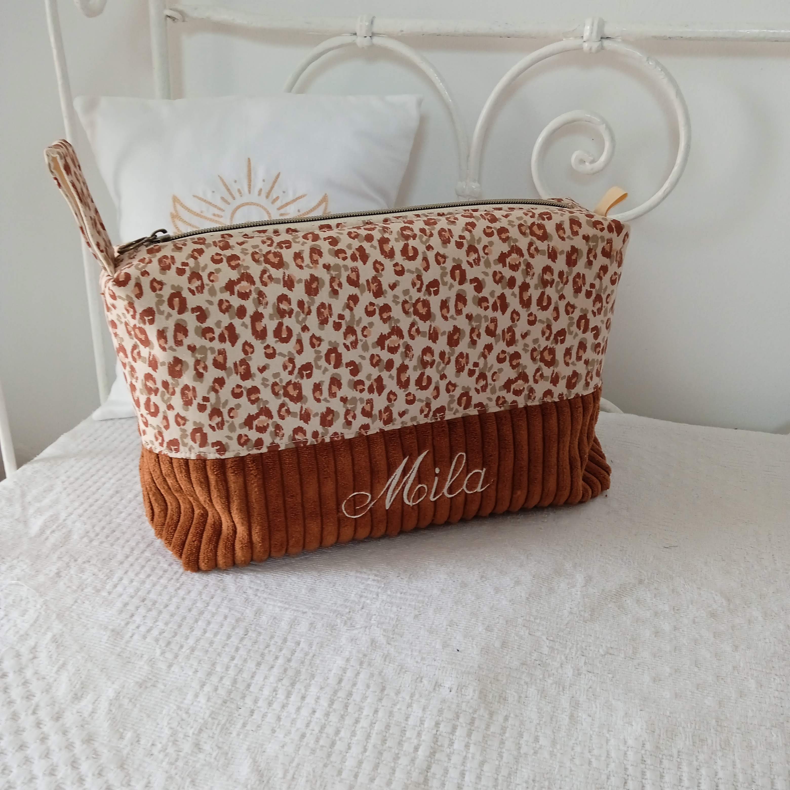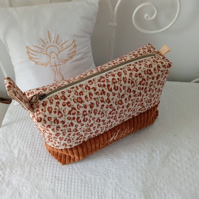 Personnalisation de la trousse de toilette Astrid en velours grosses côtes 1cm: