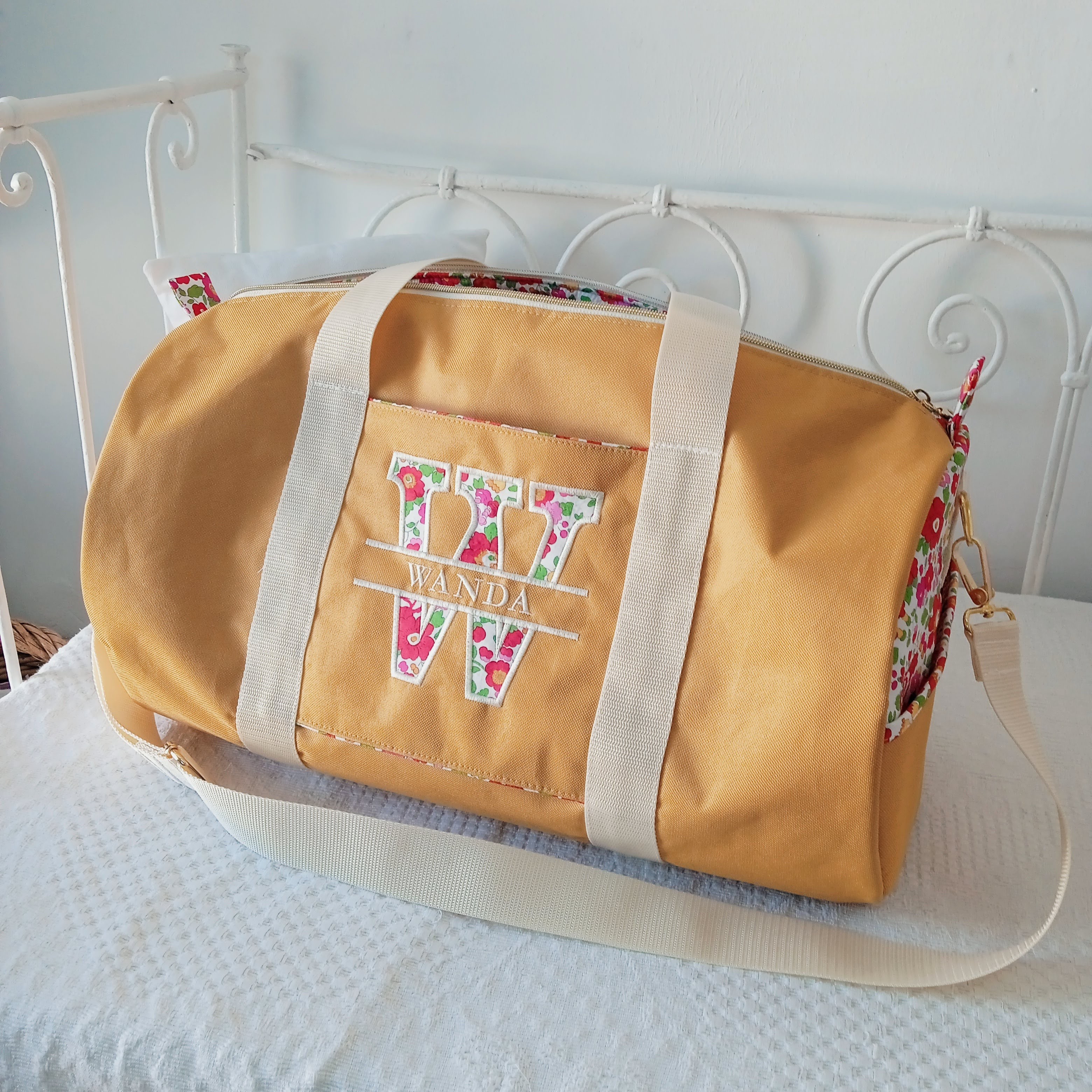 * majuscule ou dessin en appliqué (même motif, ou assortie au tissu intérieur)