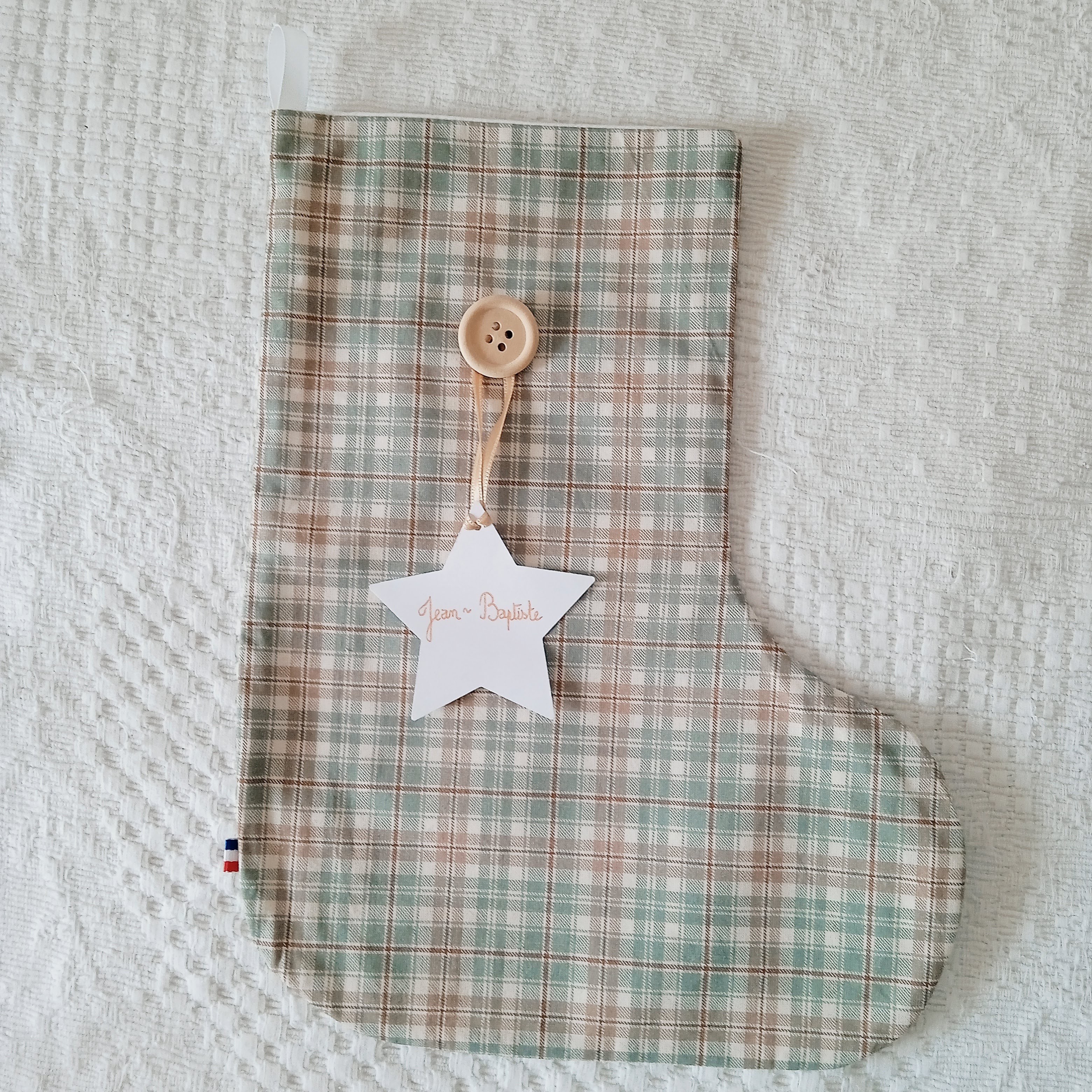 Chaussette de Noël TUSKEE vert et beige (personnalisable)