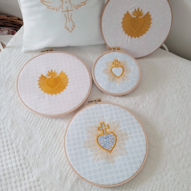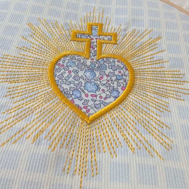 Le sacré coeur est la croix sont brodés avec un appliqué de tissu, à choisir parmi les collections ci après: